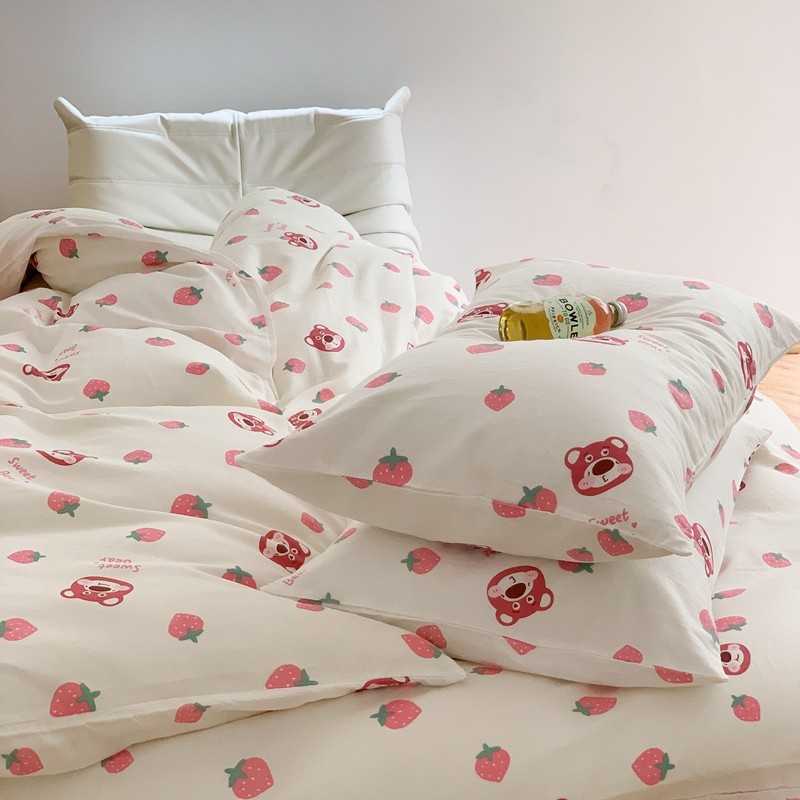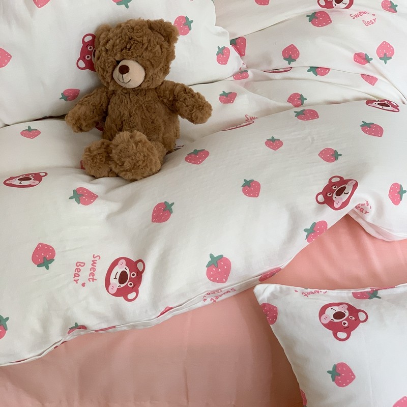 金丝鸟 2022新款全棉双层纱四件套 草莓憨憨