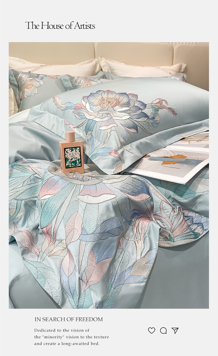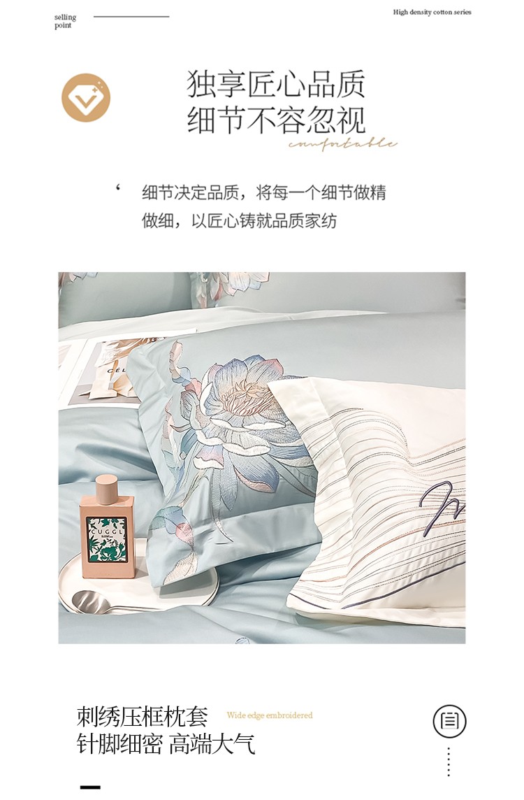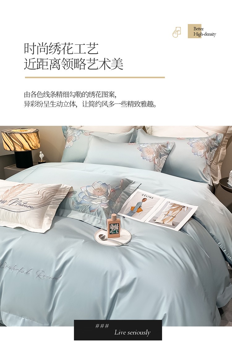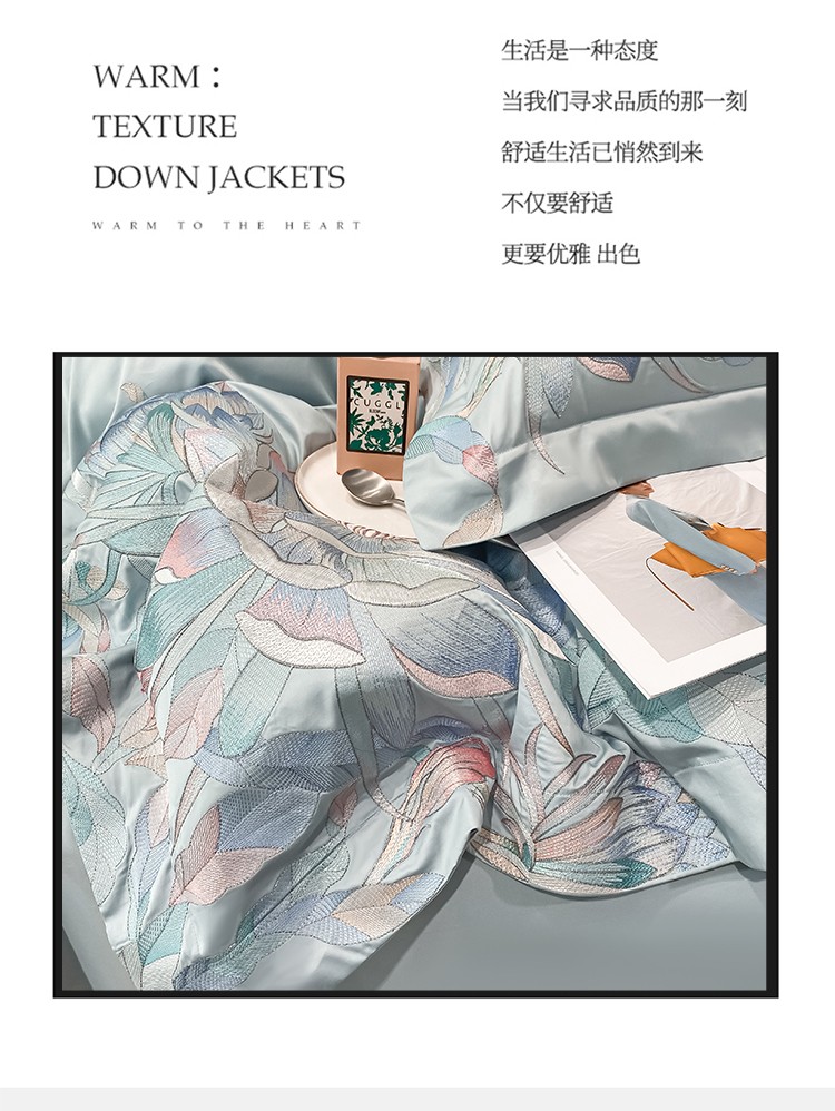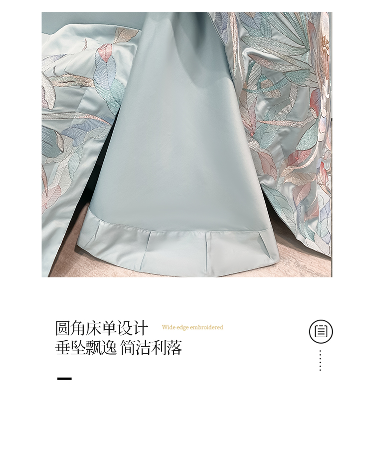 魅都 新100阿克苏长绒棉刺绣四件套荷塘月色天空蓝