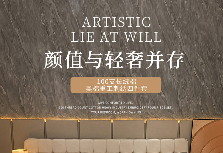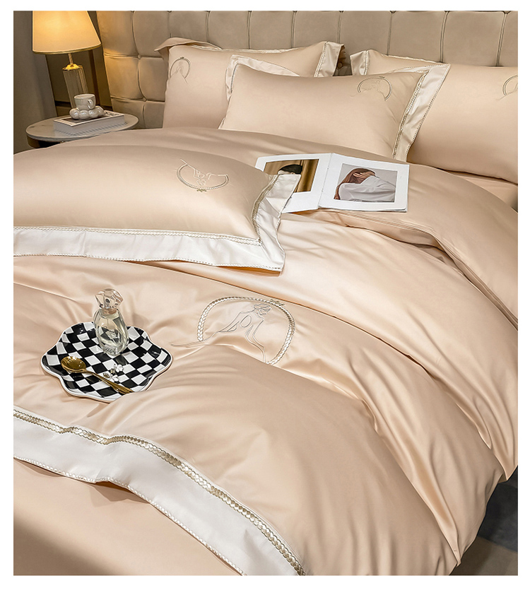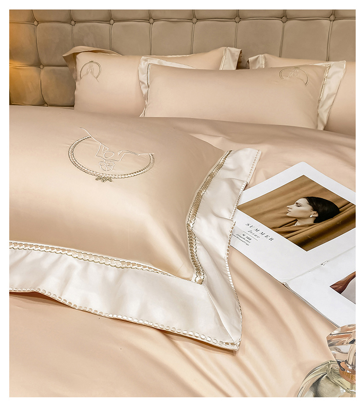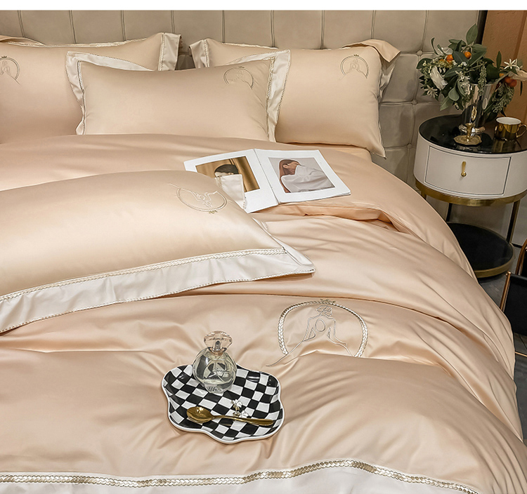 商品名称:爱缦 2022新款爱莎公主系列100支长绒棉四件套 奶茶杏