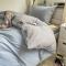 秀色 纯色双拼全棉水洗学生宿舍三件套被套四件套 浅蓝+浅灰