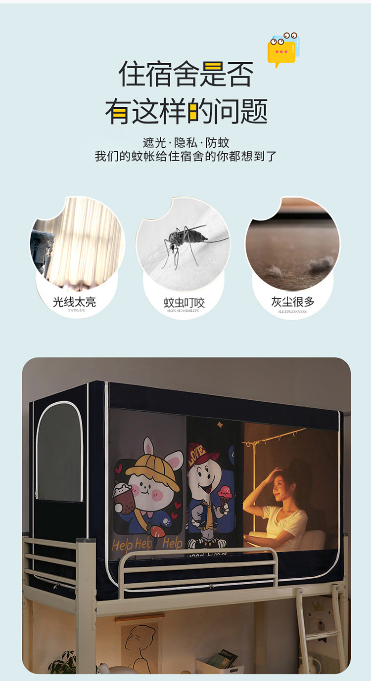 (总)2024新款U型导轨学生上下铺通用蚊帐,帕恰狗蓝,帕恰狗绿,甜蜜窑,喜洋洋奶白