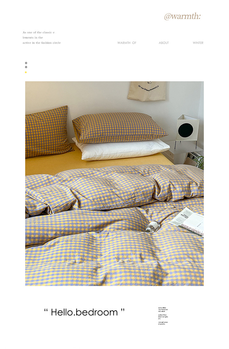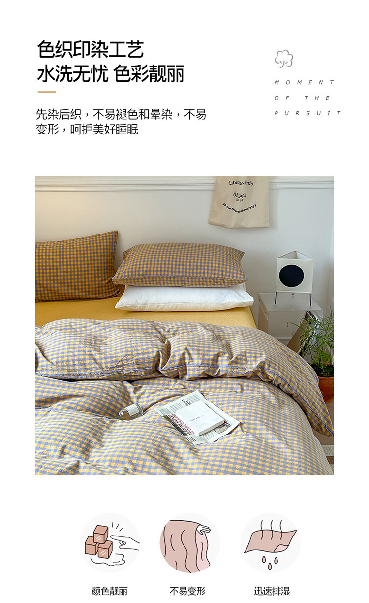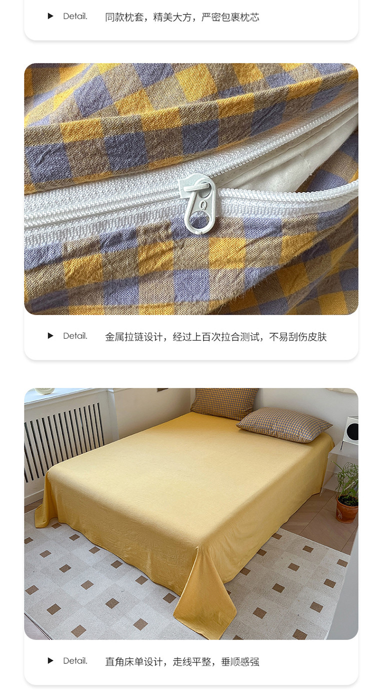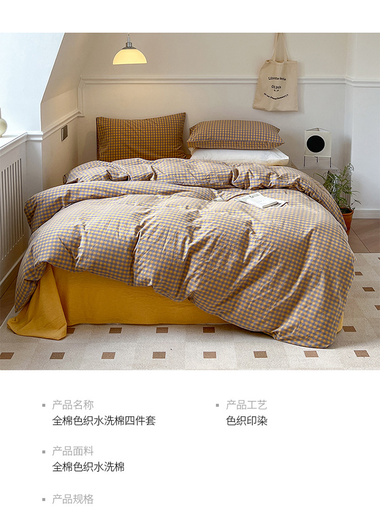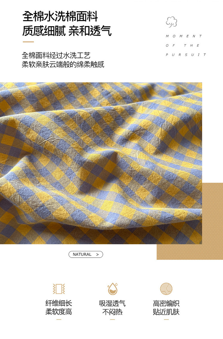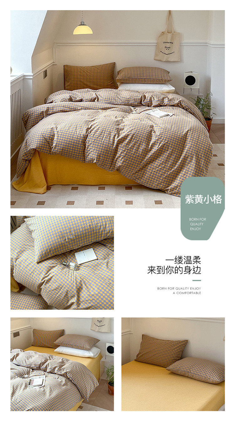 当前位置: 91家纺网 > 商品网购 > 床品套件 > 四件套 > 水洗棉四件套 > 2022年新款日式简约良品纯棉全棉色织水洗棉四件套紫黄小格