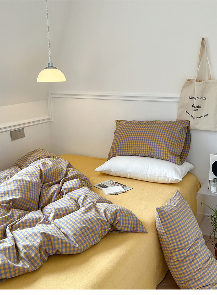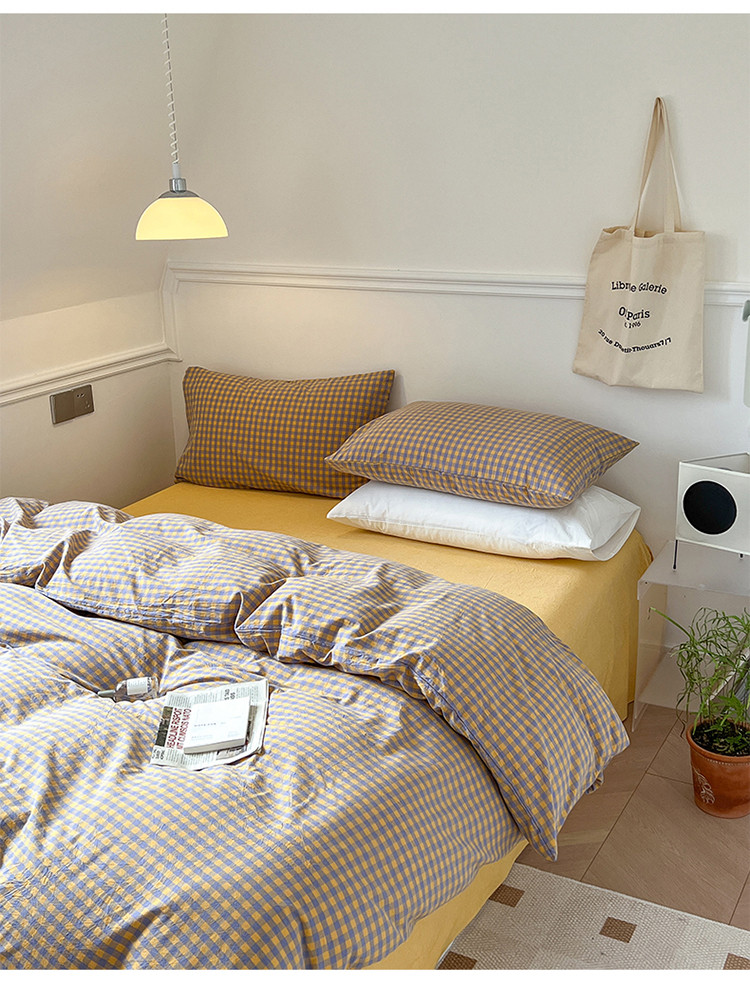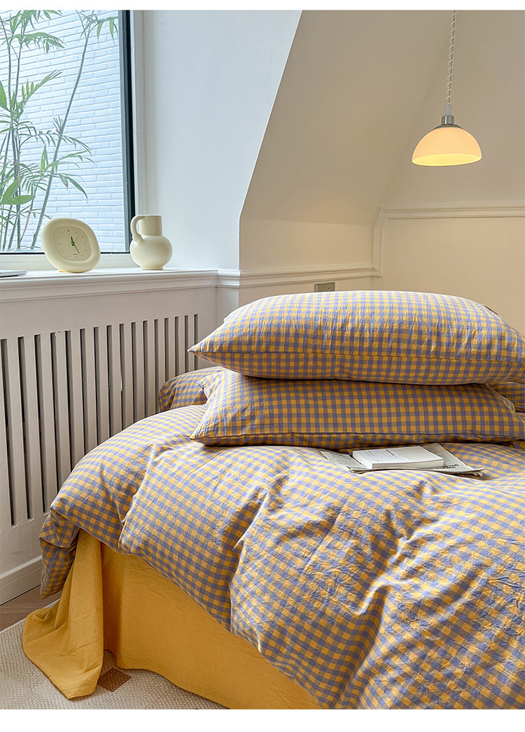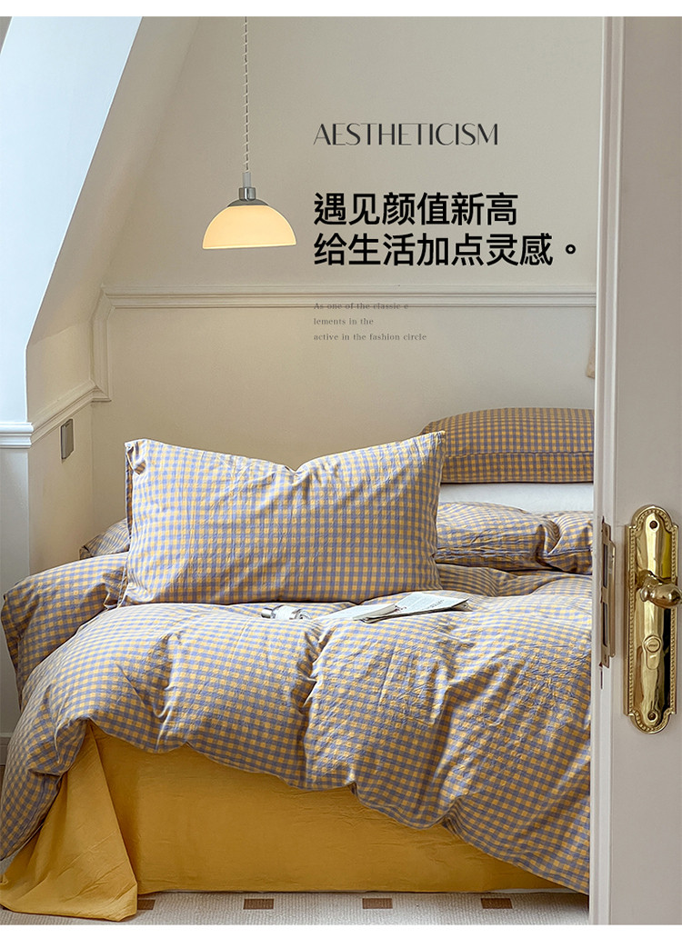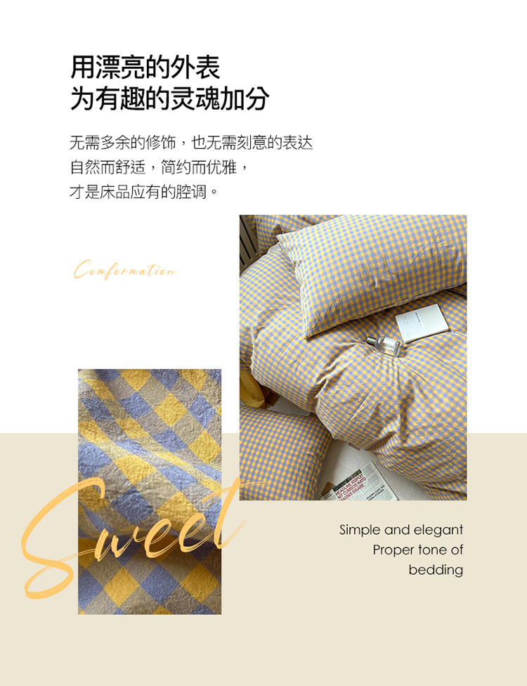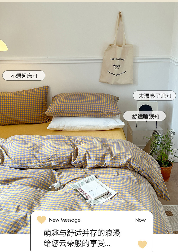 当前位置: 91家纺网 > 商品网购 > 床品套件 > 四件套 > 水洗棉四件套 > 2022年新款日式简约良品纯棉全棉色织水洗棉四件套紫黄小格