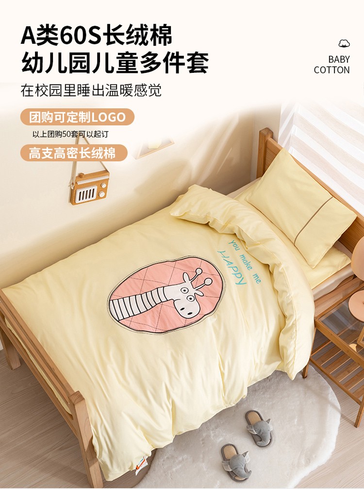 当前位置: 91家纺网 > 商品网购 > 床品套件 > 三件套 > 喜多兔2022新60s长绒棉纯棉幼儿园三件套 黄色微笑小鹿鹿