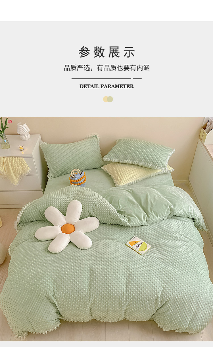 商品名称:玛奇朵 2022升级版A类豆豆绒梦露系列四件套 梦露-薄荷绿