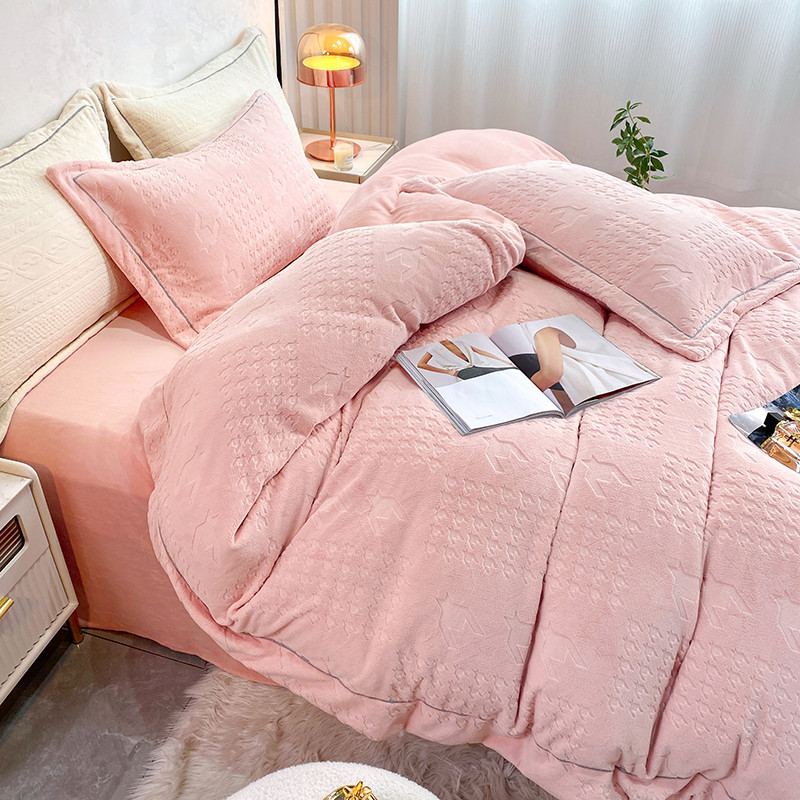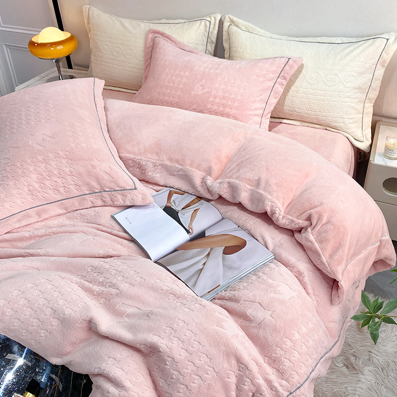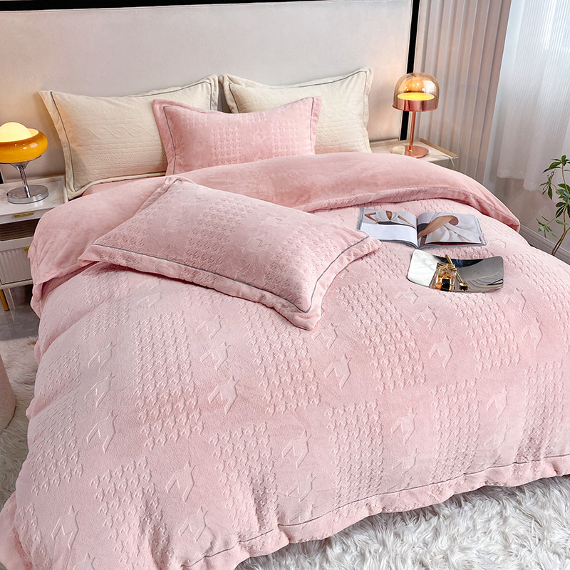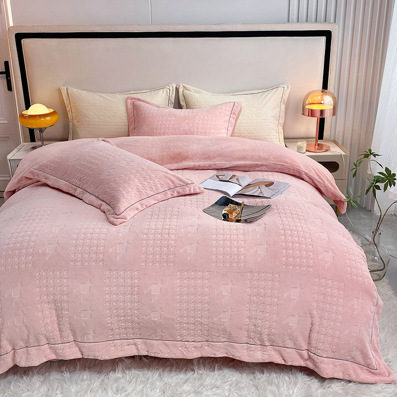 商品名称:凡客家居 2022新款牛奶绒雕花系列四件套 千鸟格-豆沙