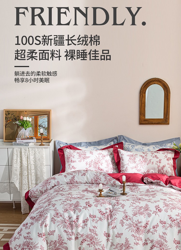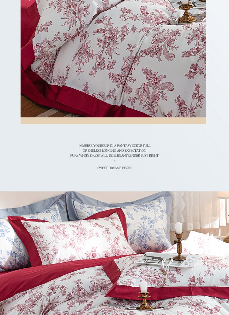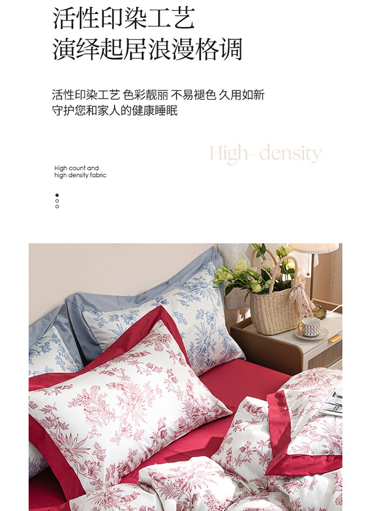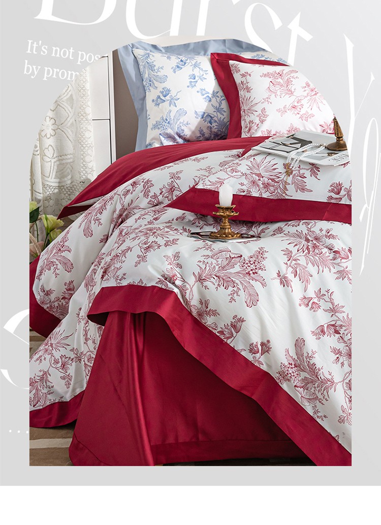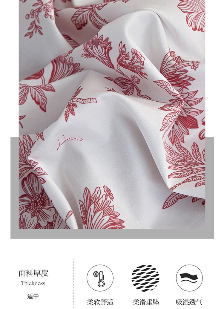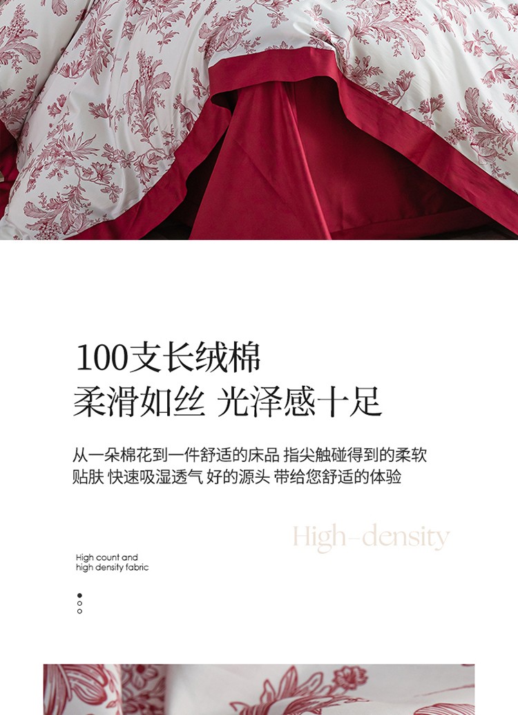 商品名称:安莱 2022新款100支长绒棉数码印花四件套-花屿 克里红
