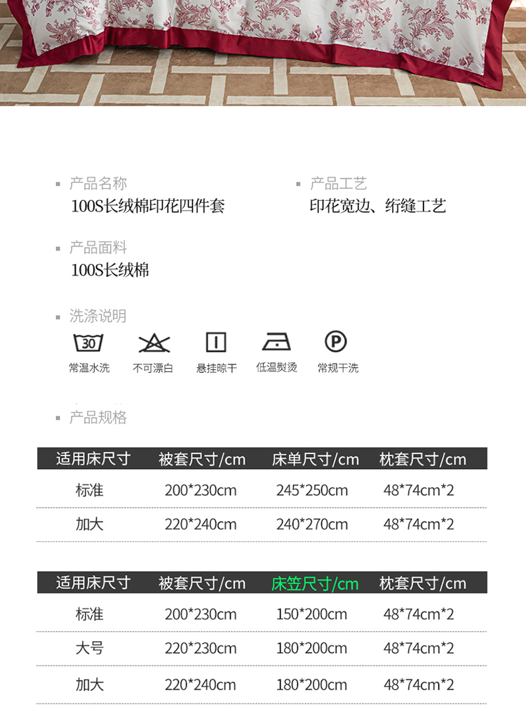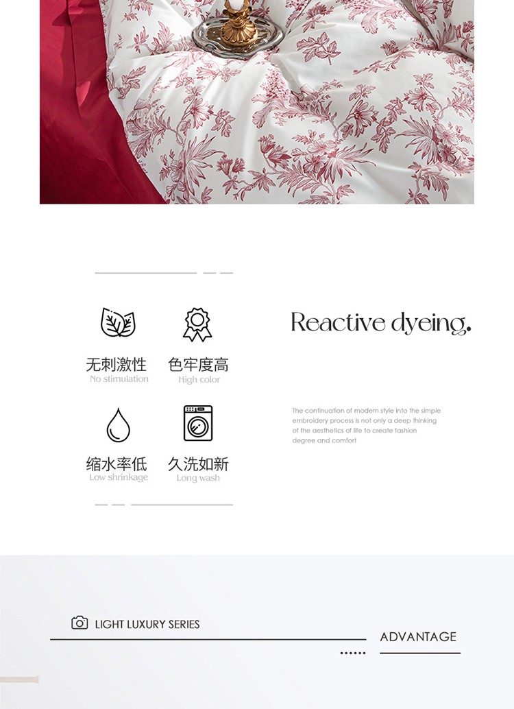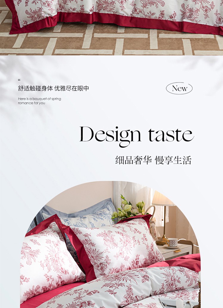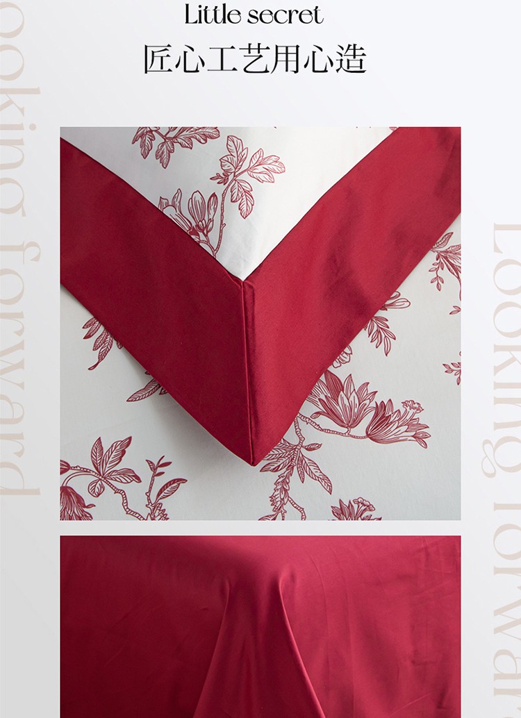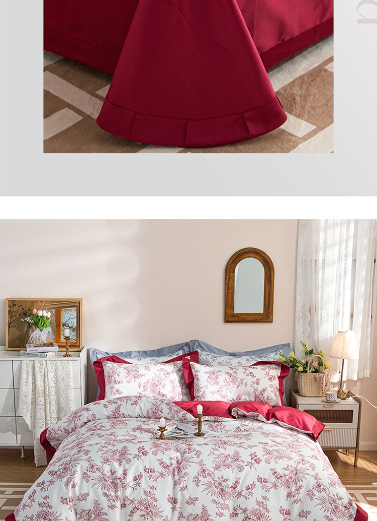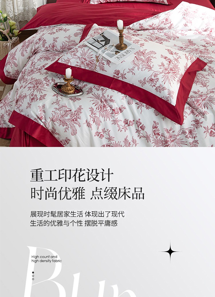 商品名称:安莱 2022新款100支长绒棉数码印花四件套-花屿 克里红