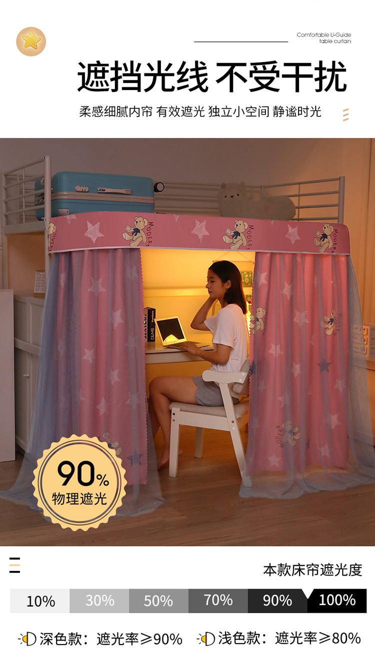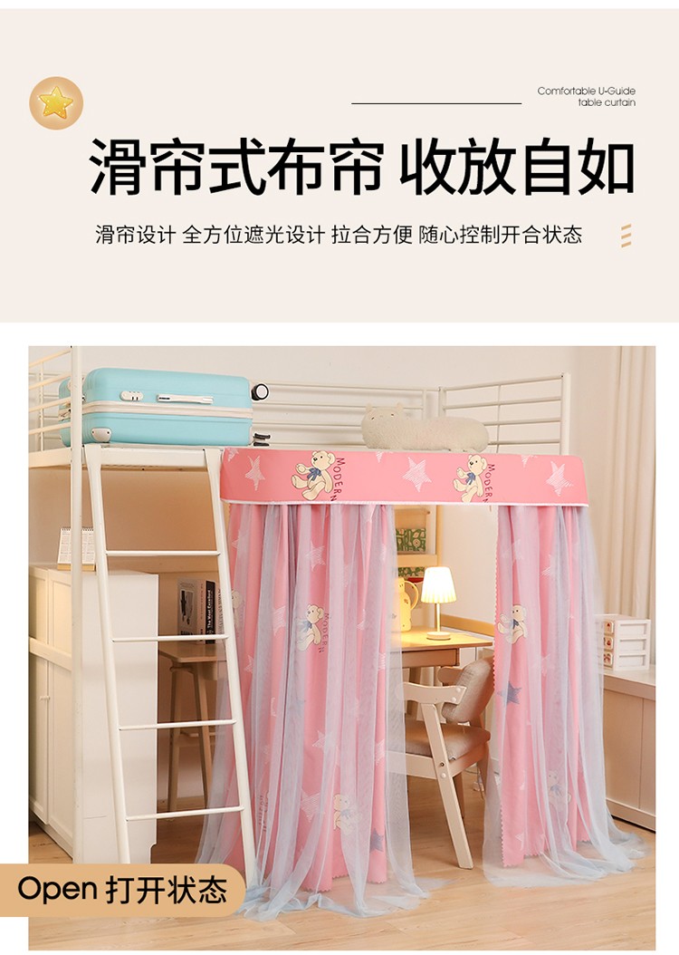 商品名称:迪凡保罗 2022新款C20铝合金导轨学生桌帘 星光熊 粉