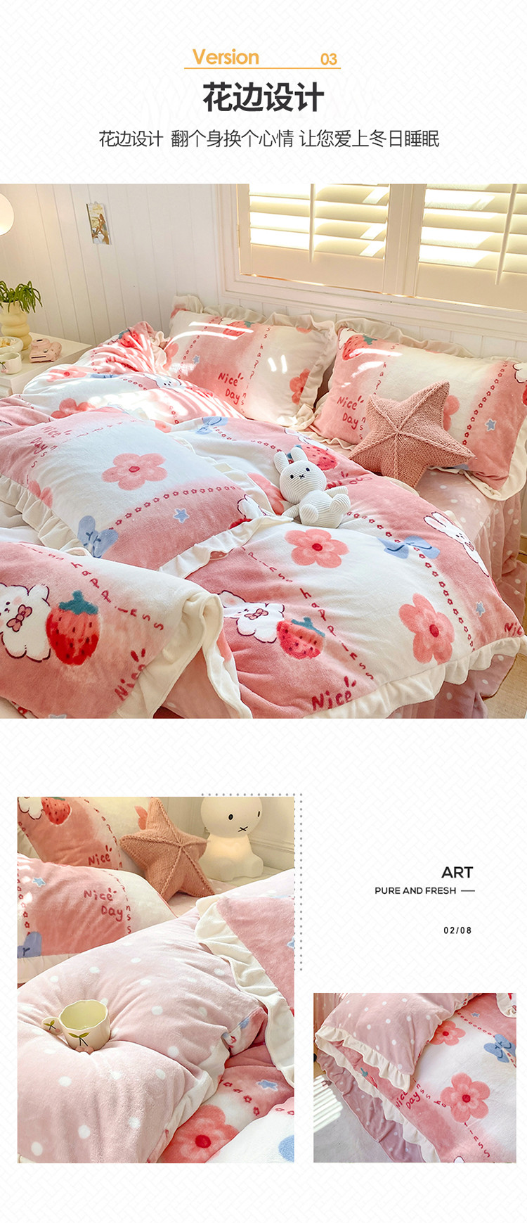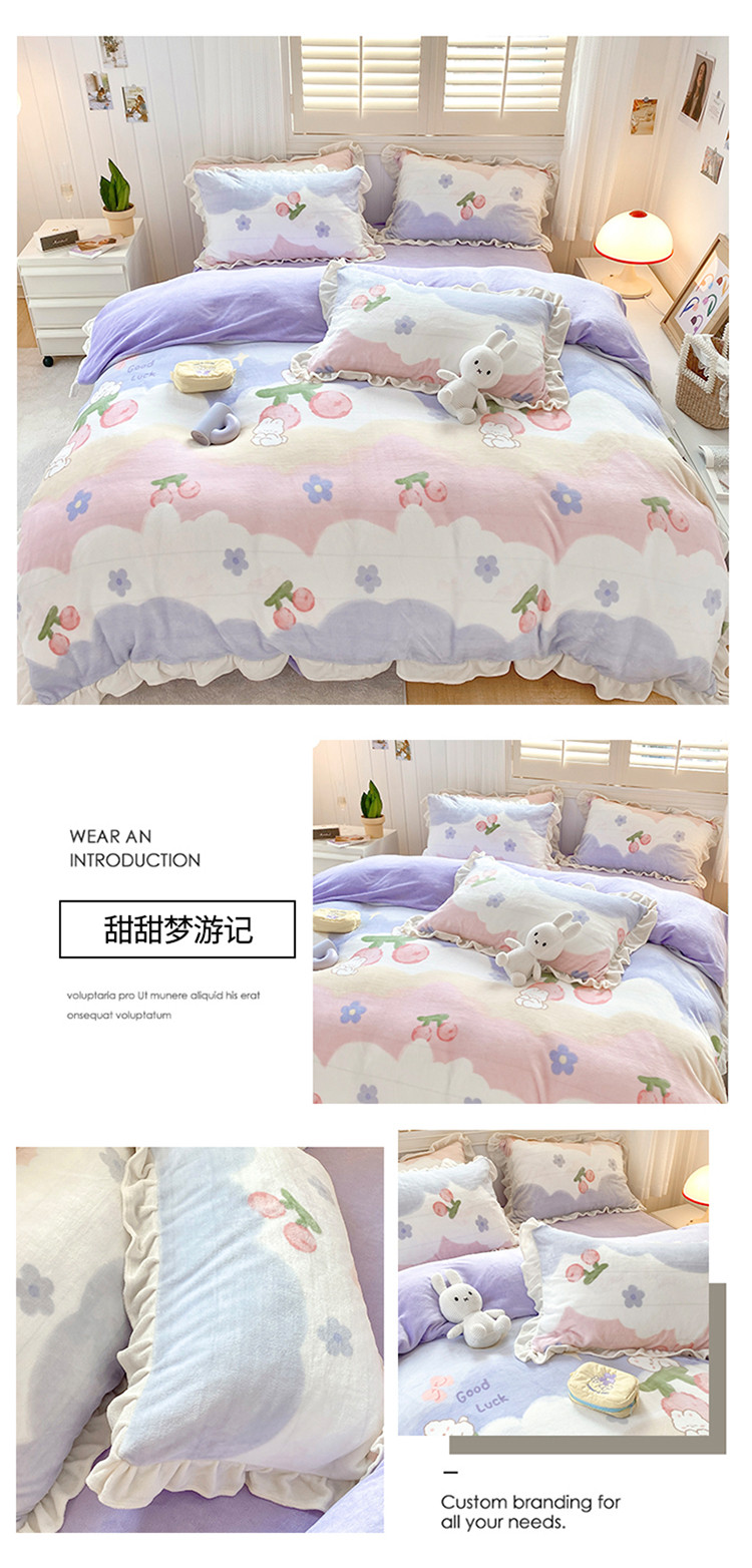 总眠屿家纺新款ins仙仙的牛奶般丝滑韩版牛奶绒床裙床盖三件套,法式庄园,粉波点,黑白爱心,黑白蝴蝶结,黑波点,红蝴蝶结,蓝爱心,浪漫满屋,奶牛纹,枇杷,樱桃,紫色郁金香
