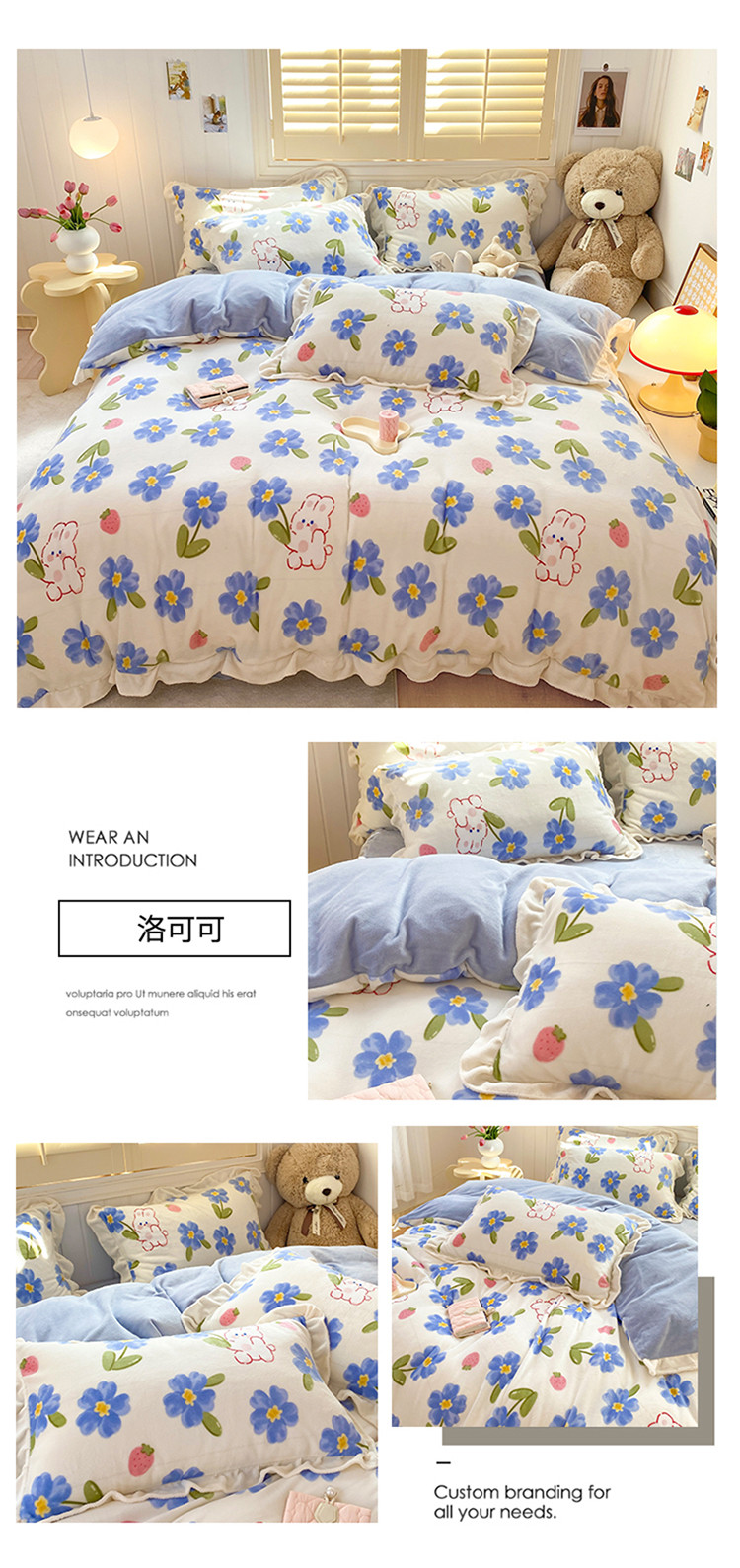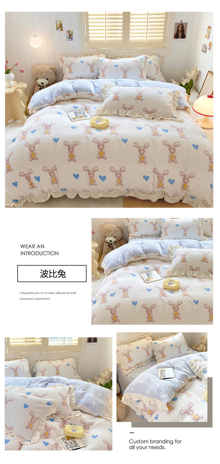 (总)眠屿 2022新款韩国绒绣花四件套-爱心熊,宝石蓝,豆沙粉,芥末绿,奶茶咖