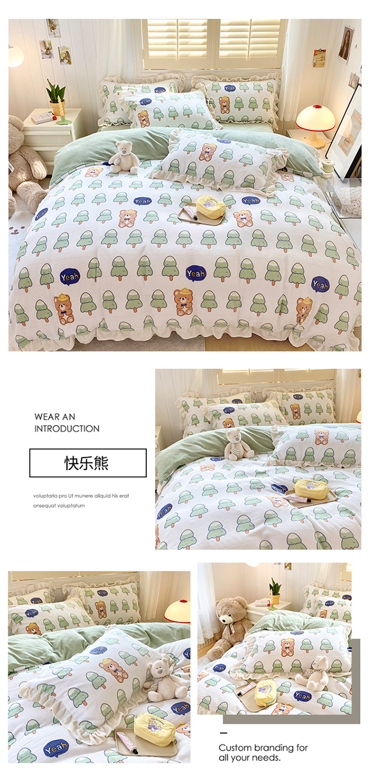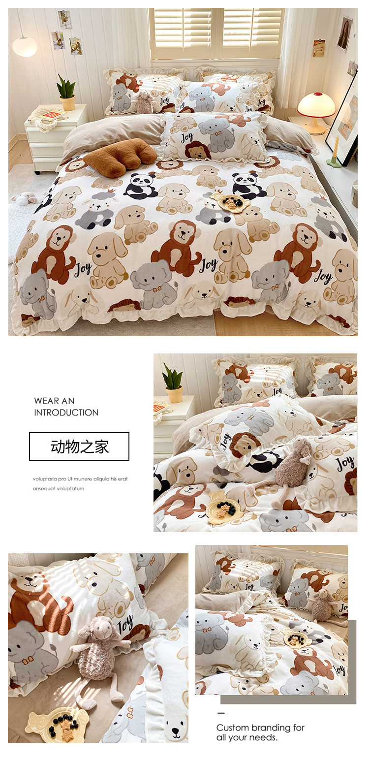 (总)眠屿家纺 2025新款加厚牛奶绒贴布绣四件套,棒球熊,动物朋友,欢乐音乐