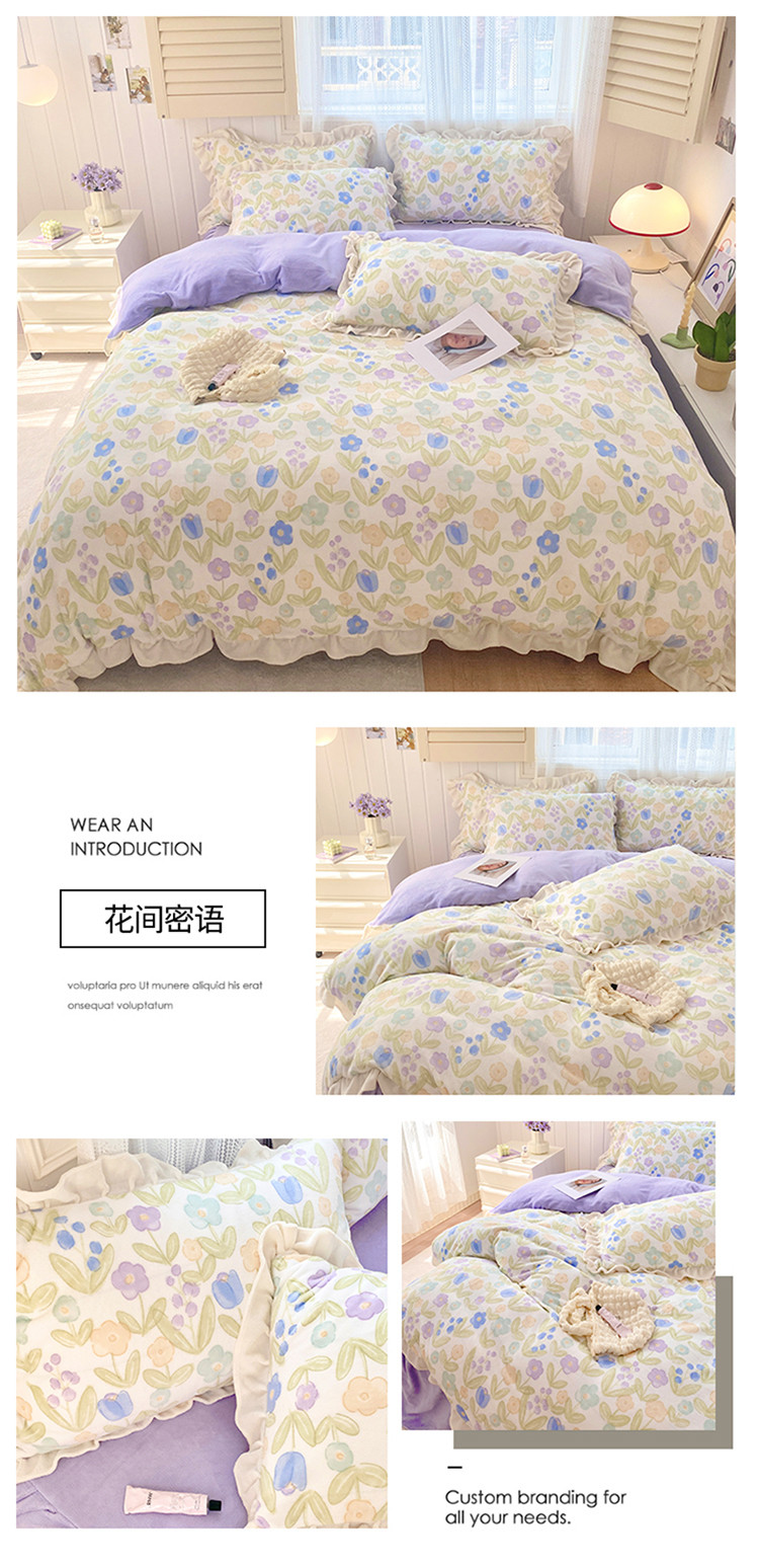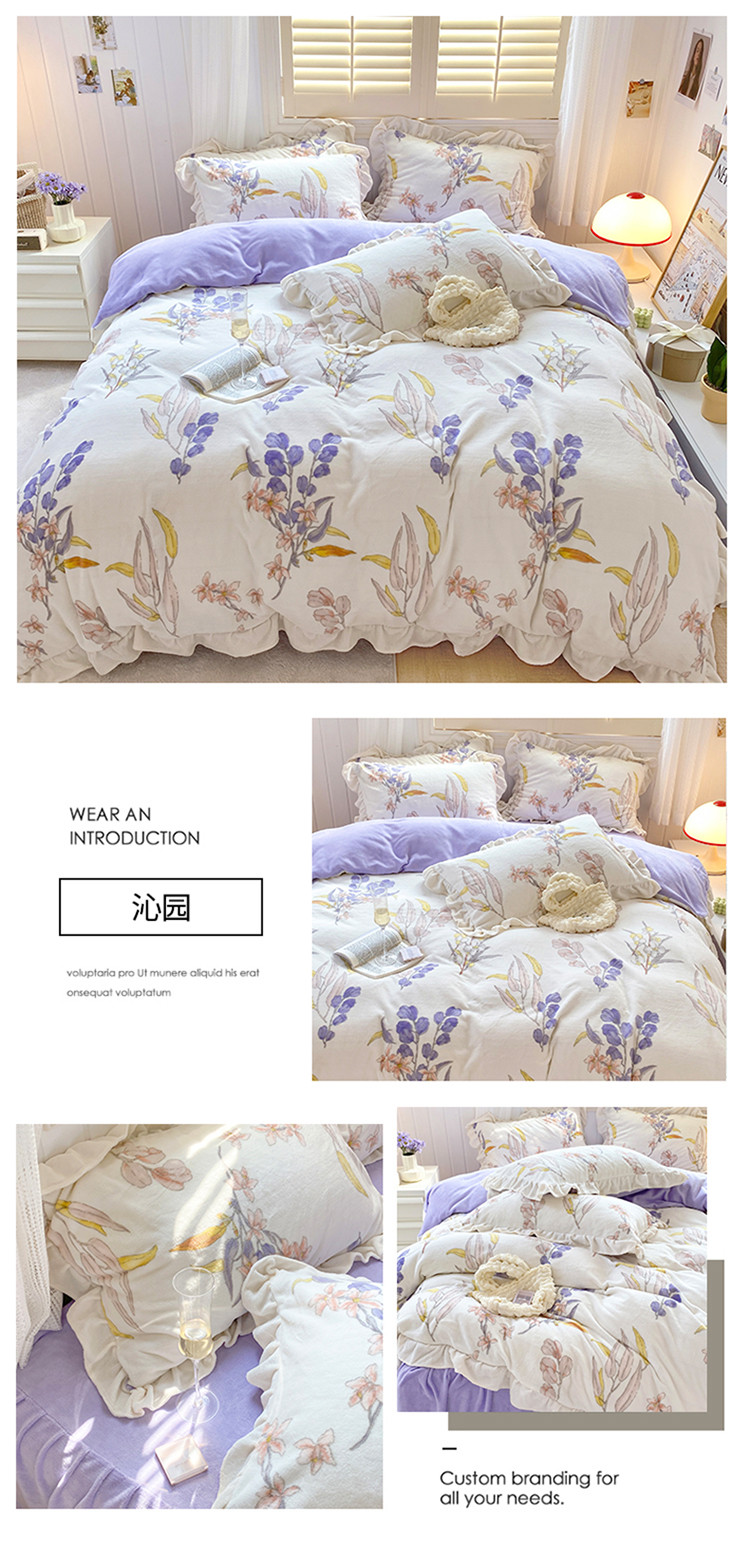 (总)眠屿 2022新款牛奶绒花边系列床单床裙床笠四件套