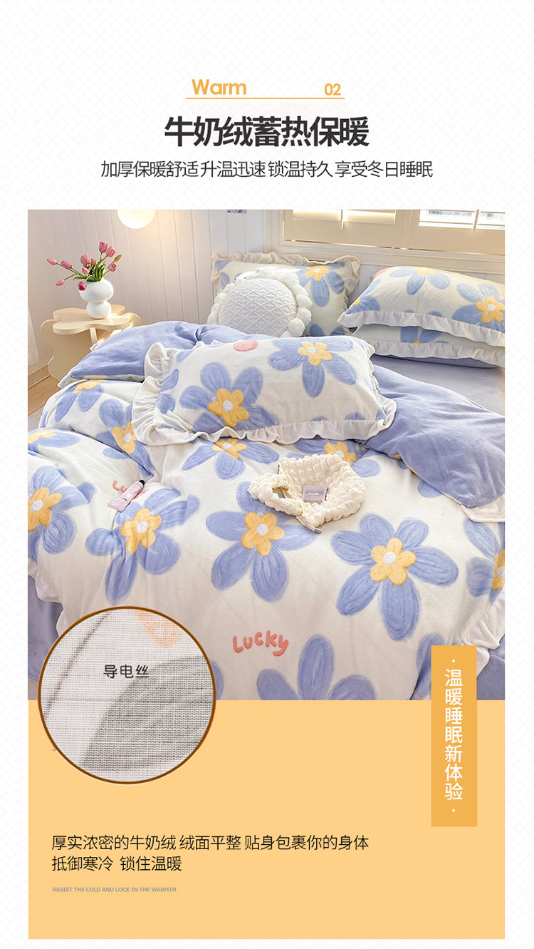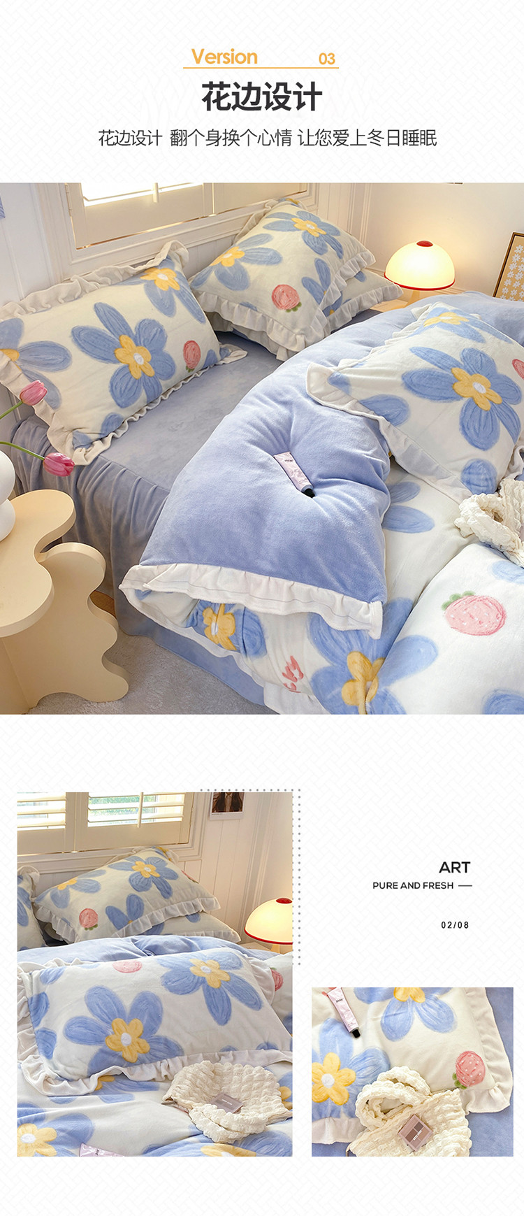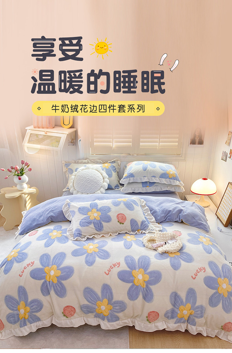当前位置: 91家纺网 > 商品网购 > 床品套件 > 四件套 > 磨绒四件套 > 眠屿 2022新款牛奶绒花边系列床单床裙床笠四件套 幸运兰花