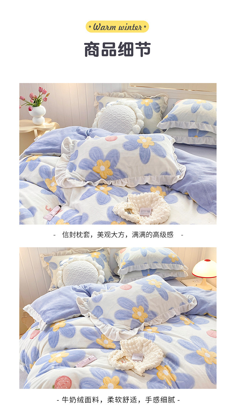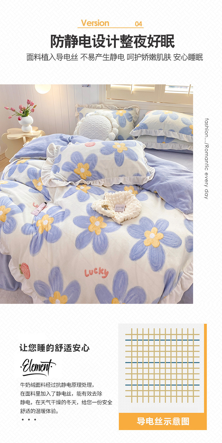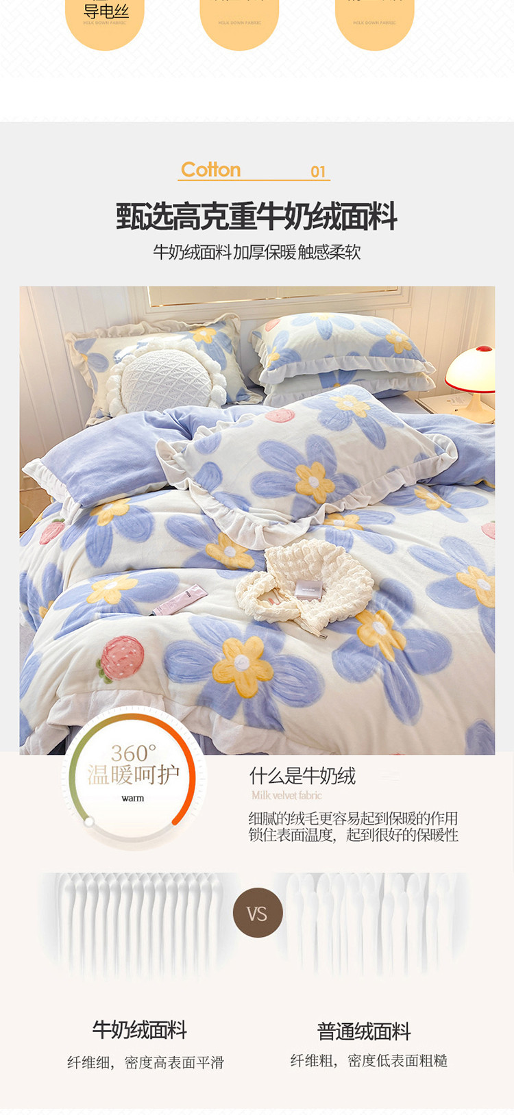 当前位置: 91家纺网 > 商品网购 > 床品套件 > 四件套 > 磨绒四件套 > 眠屿 2022新款牛奶绒花边系列床单床裙床笠四件套 幸运兰花