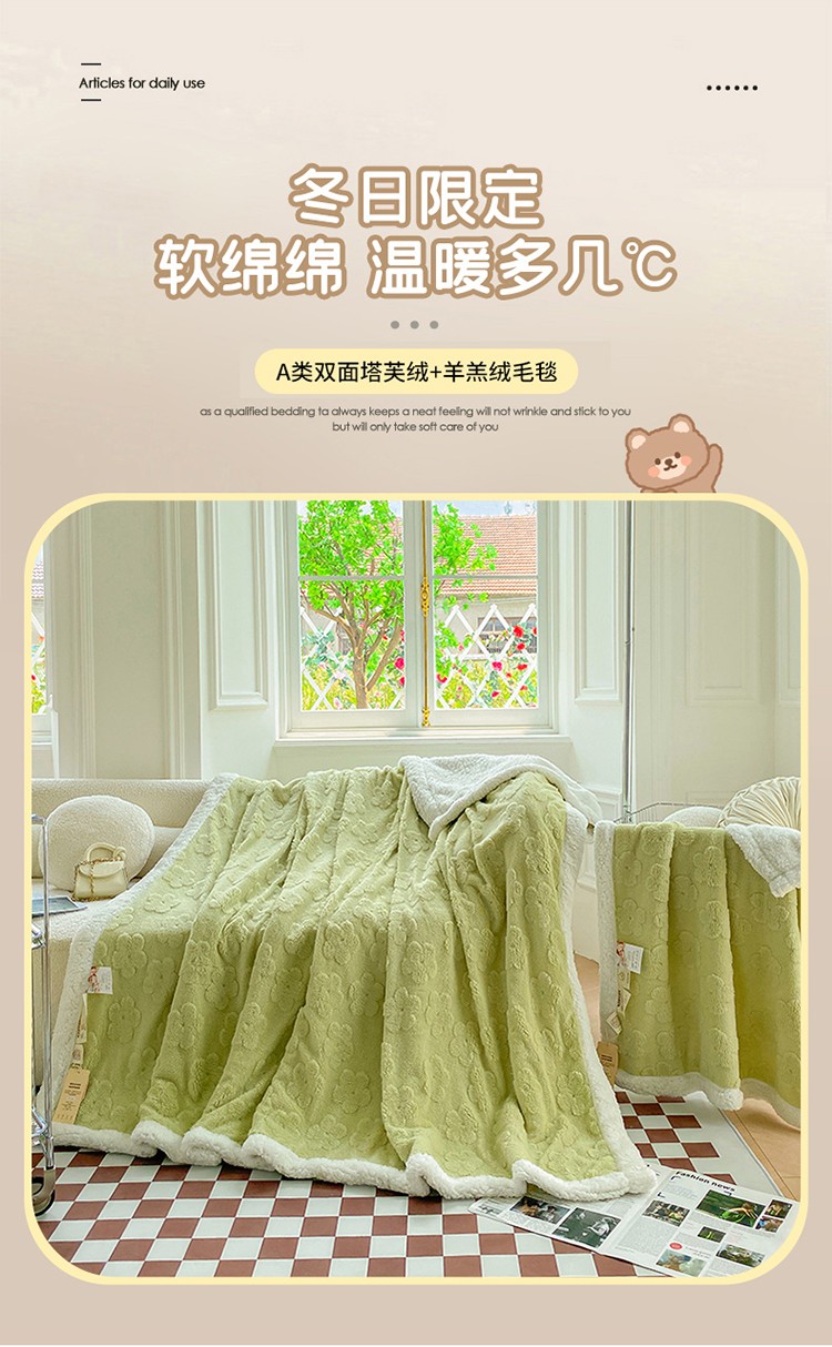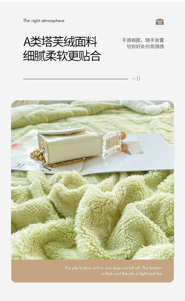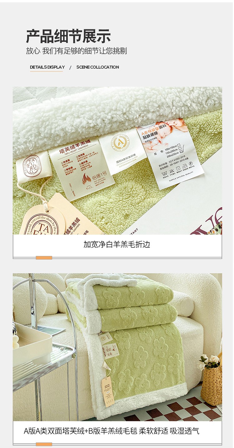 呗旺鹿2022新A类双面塔芙绒羊羔绒毛毯盖毯子 浅浅花漾-绿