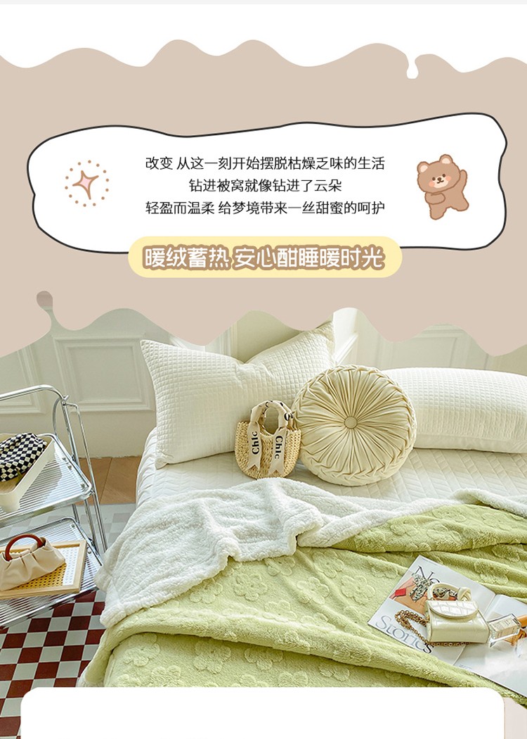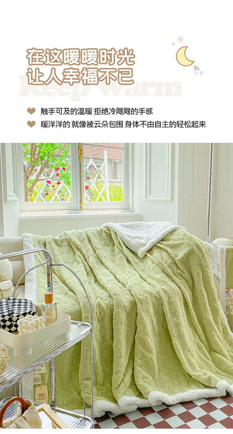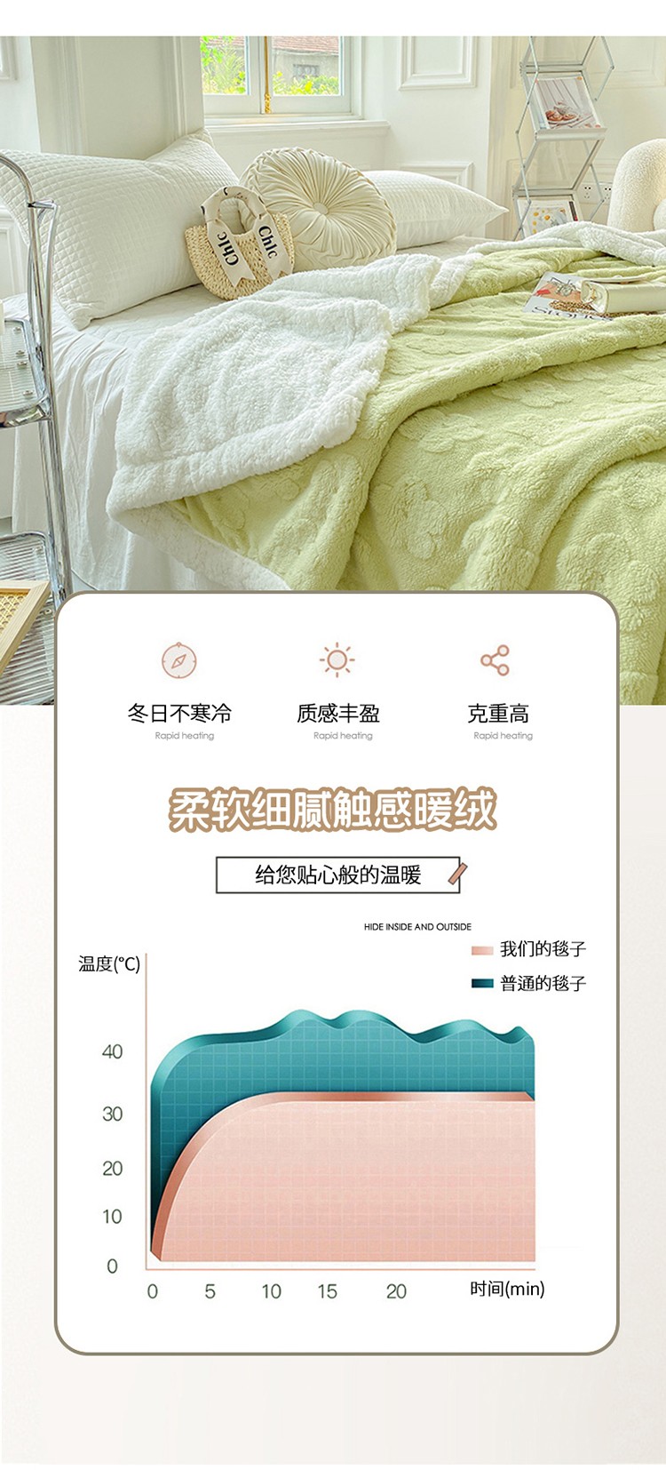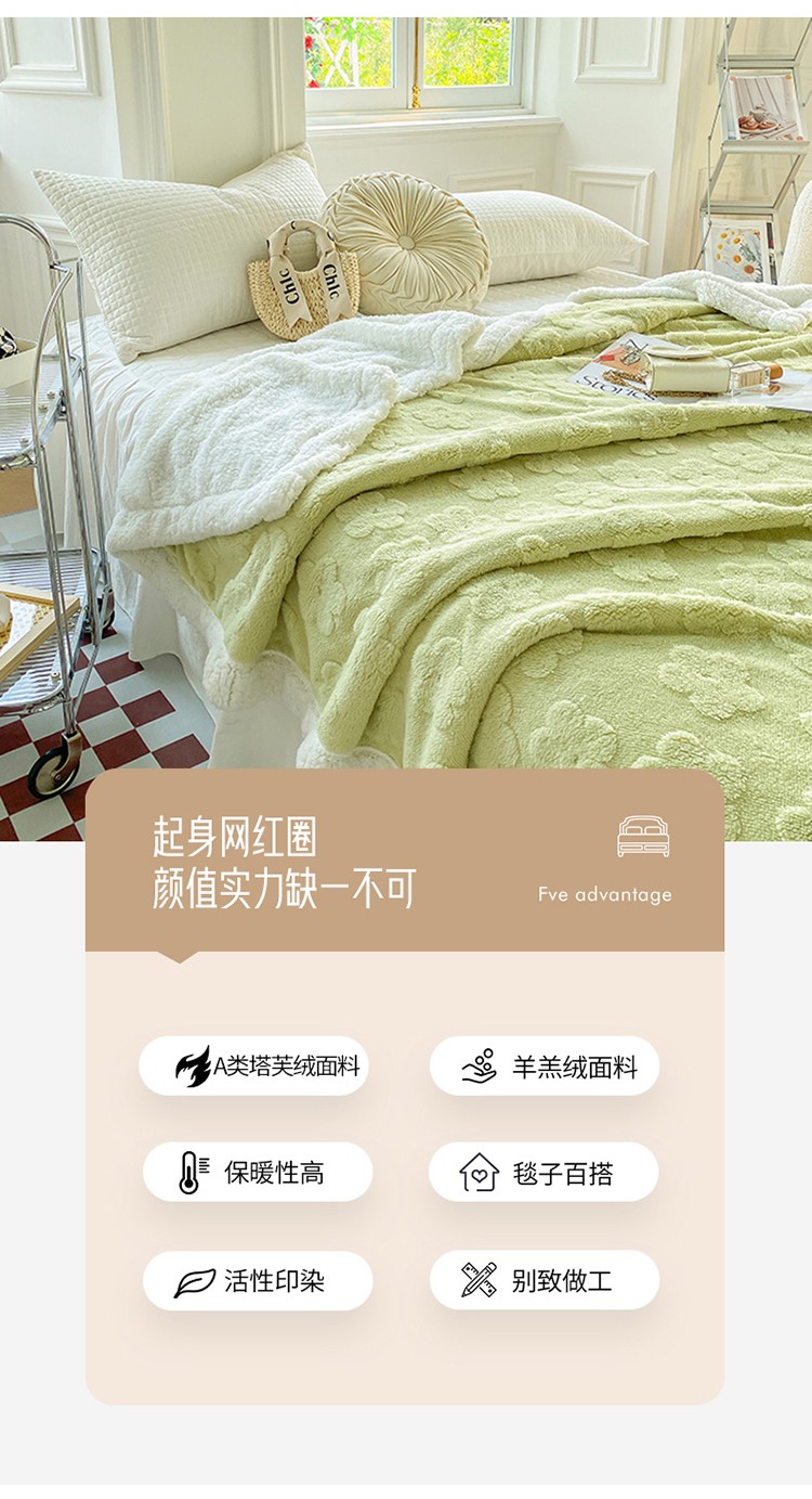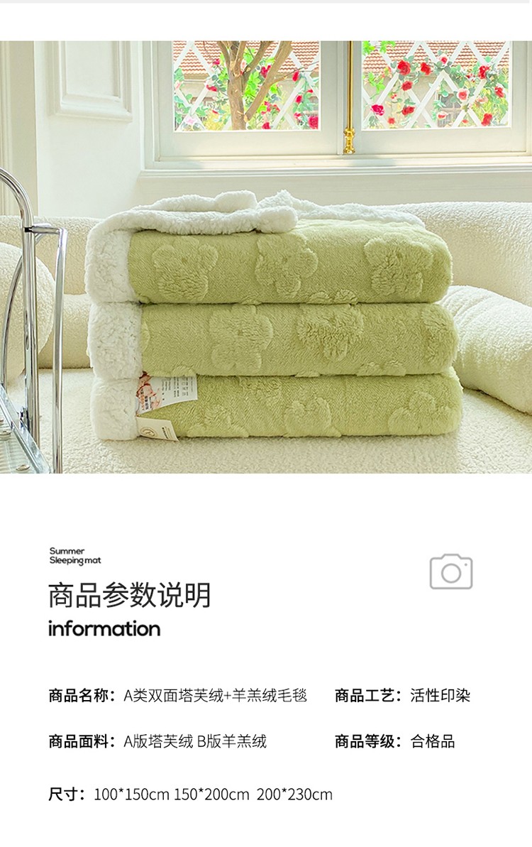 商品名称:呗旺鹿2022新A类双面塔芙绒羊羔绒毛毯盖毯子 浅浅花漾-绿