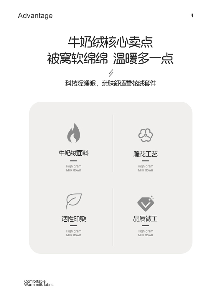 花漾家居 2024新款宽边牛奶绒四件套 月影,月影