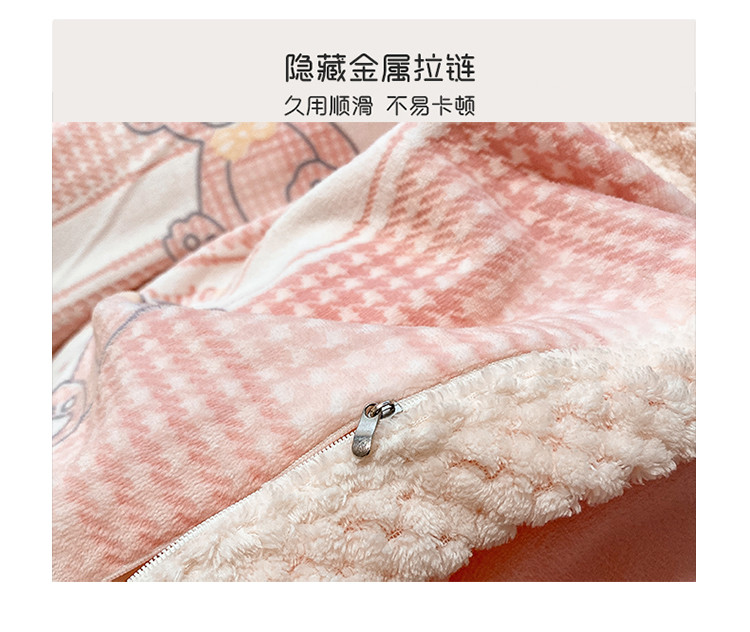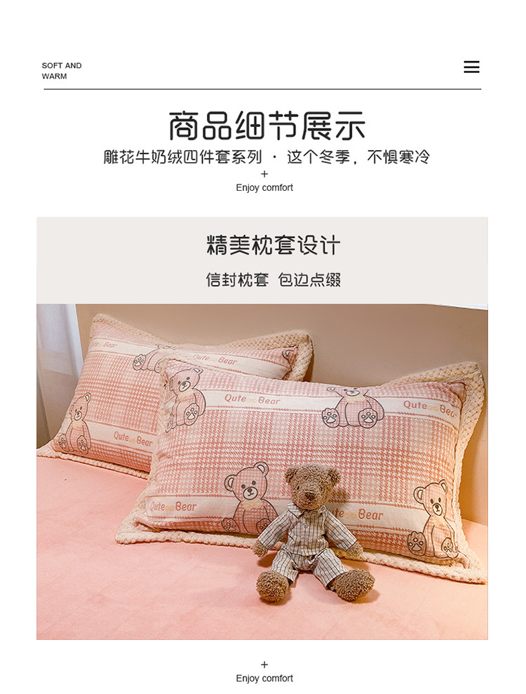 花漾家居 2023秋冬雕花牛奶绒贝贝绒包边四件套 维尼小熊粉