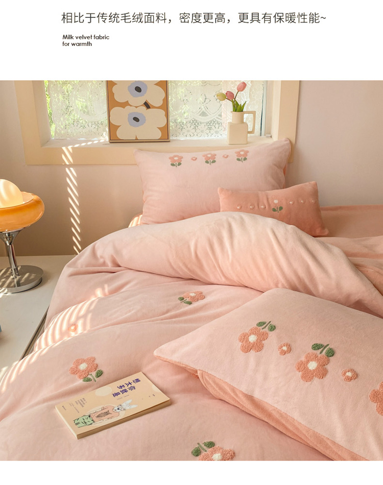 (总)寐居 2022新款A类牛奶绒毛巾绣四件套