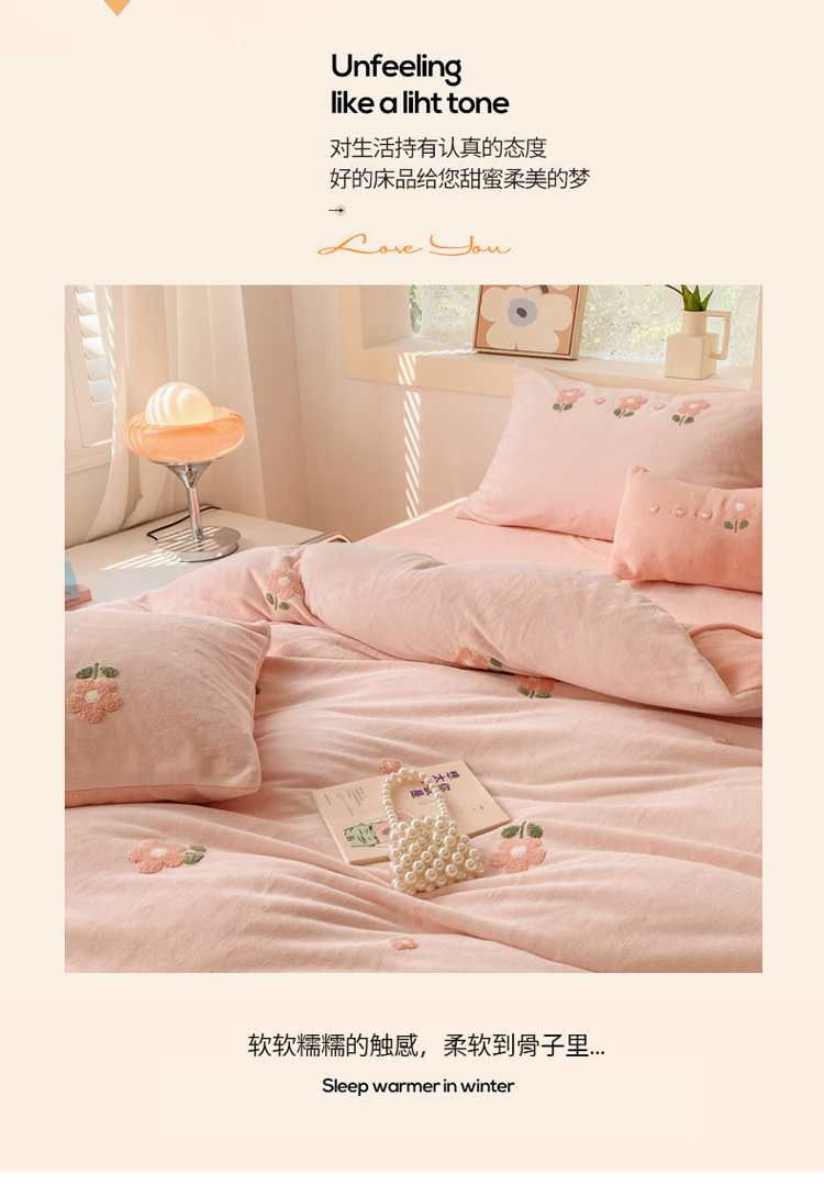 (总)寐居家纺 2025新款3D烂花牛奶绒四件套,花想容-米白,花想容-紫灰,浪漫花语,浅梦絮语,枝影蝶梦
