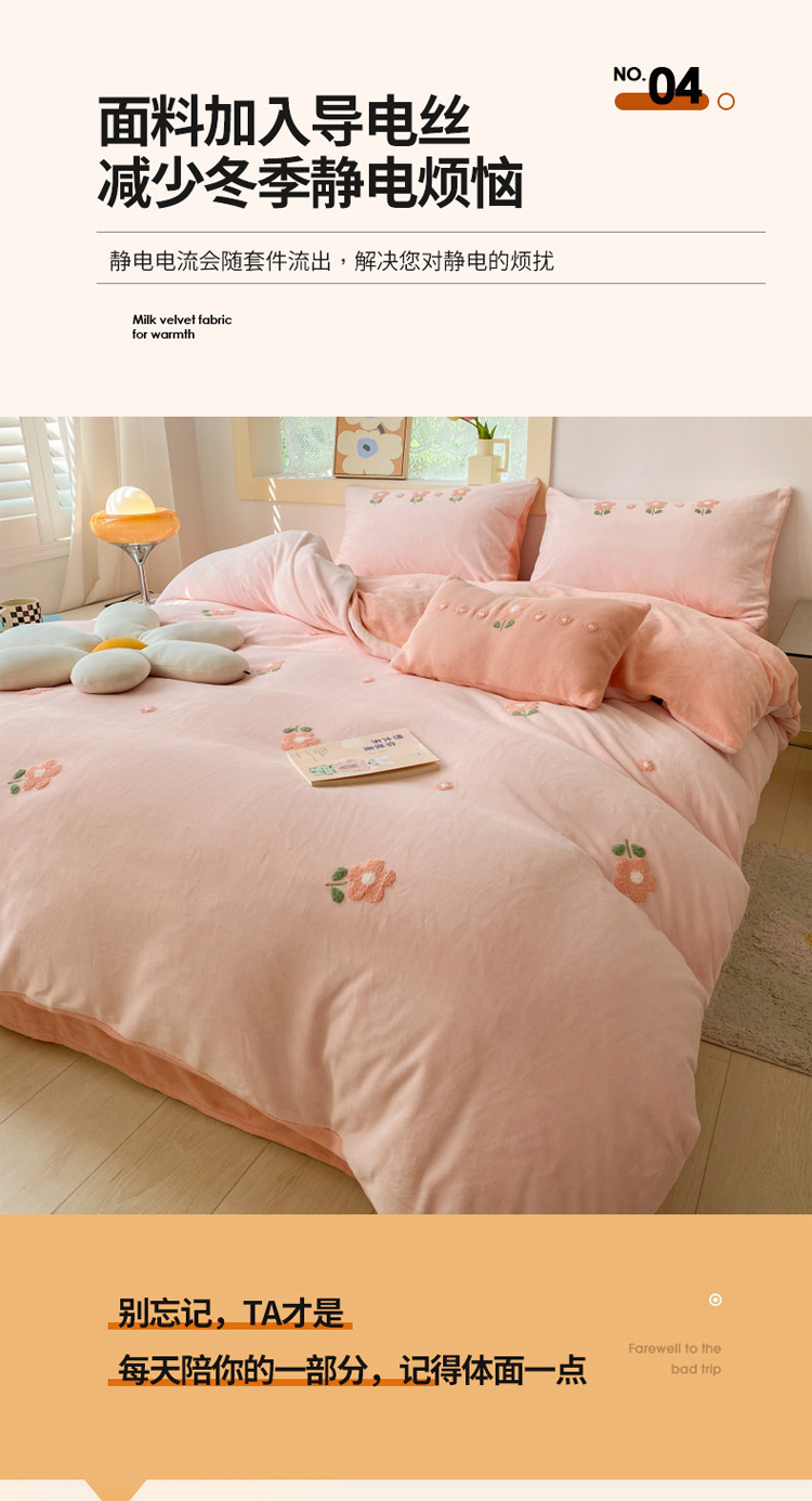 (总)寐居家纺 2025新款贴布绣高克重牛奶绒四件套,安吉拉喵,查理狗,粉糯kitty,皮皮布布