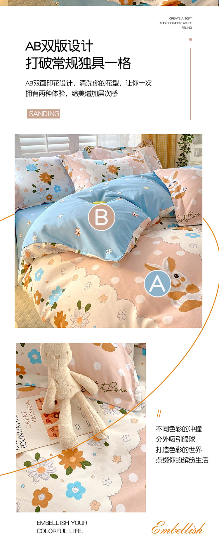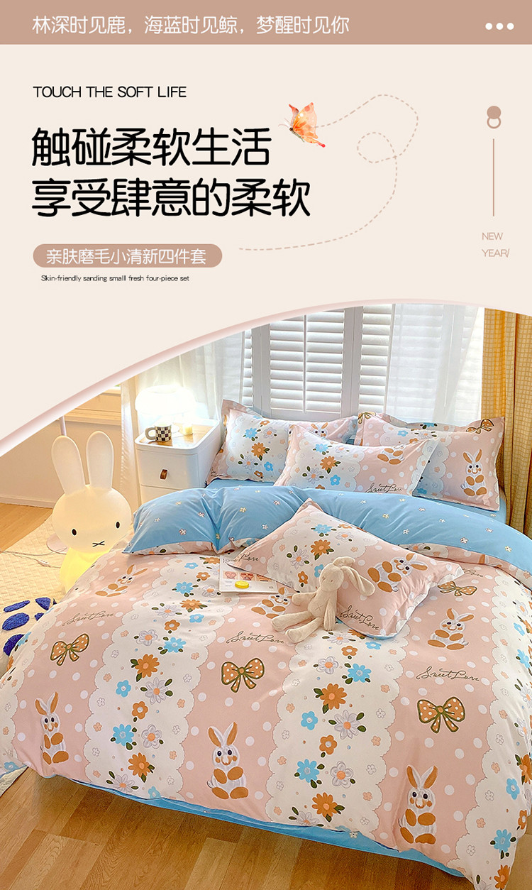 当前位置: 91家纺网 > 商品网购 > 床品套件 > 四件套 > 化纤普通四件套 > 艾橙 秋冬新款140g植物羊绒磨毛四件套系列 艾米丽