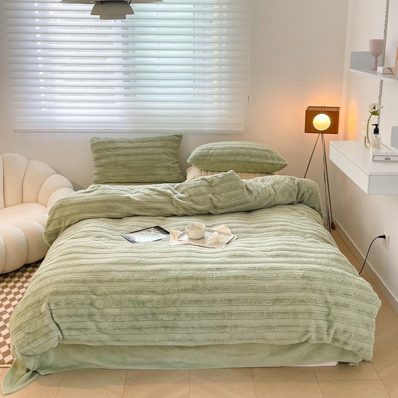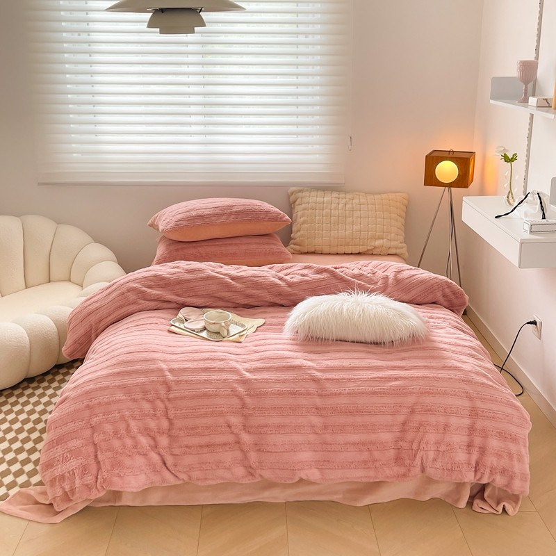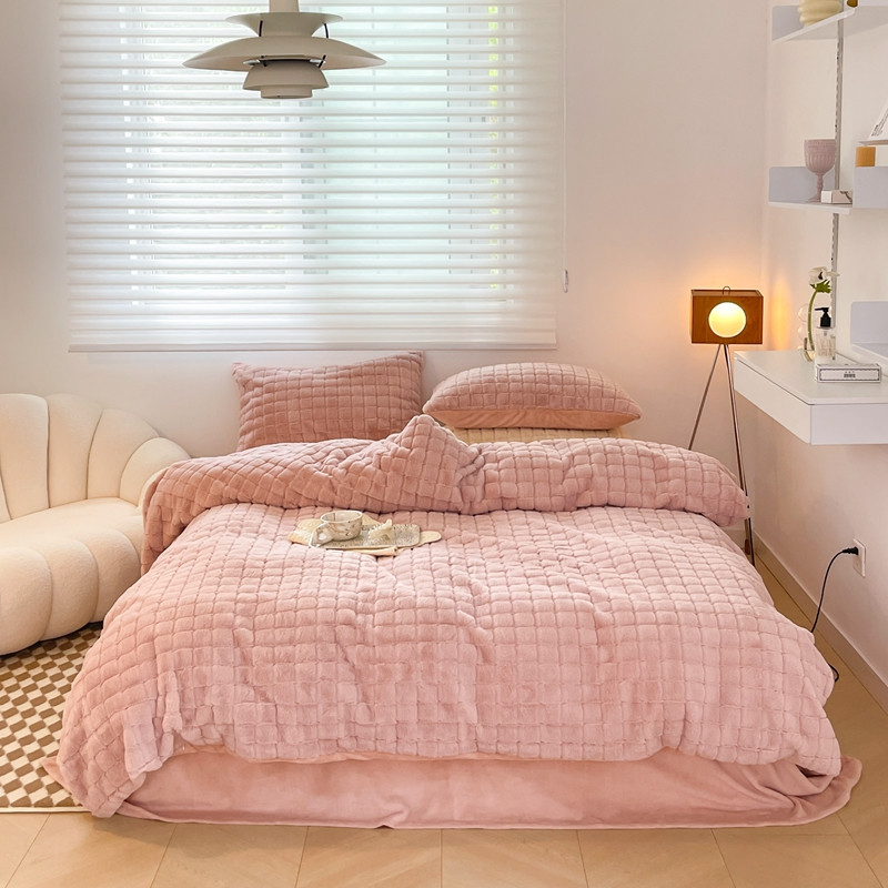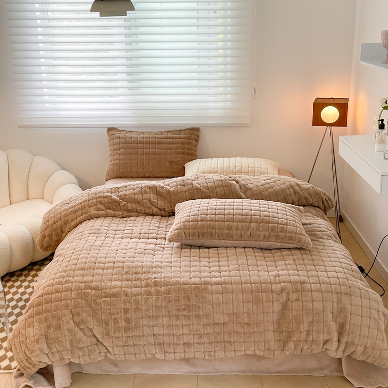 (总)顾里家纺 2022新款小贵妇仿皮草兔毛绒盖毯四件套