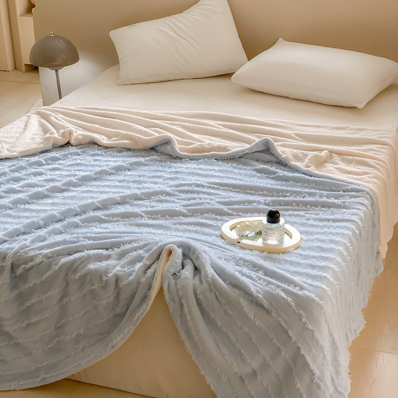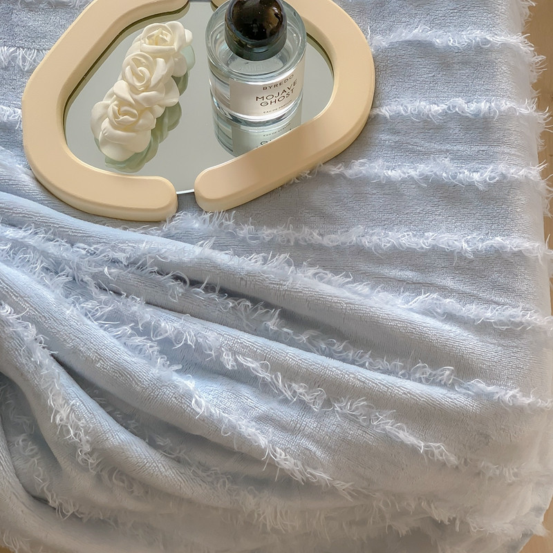 顾里家纺 2022新款加厚流苏提花泰迪绒毯 天空蓝
