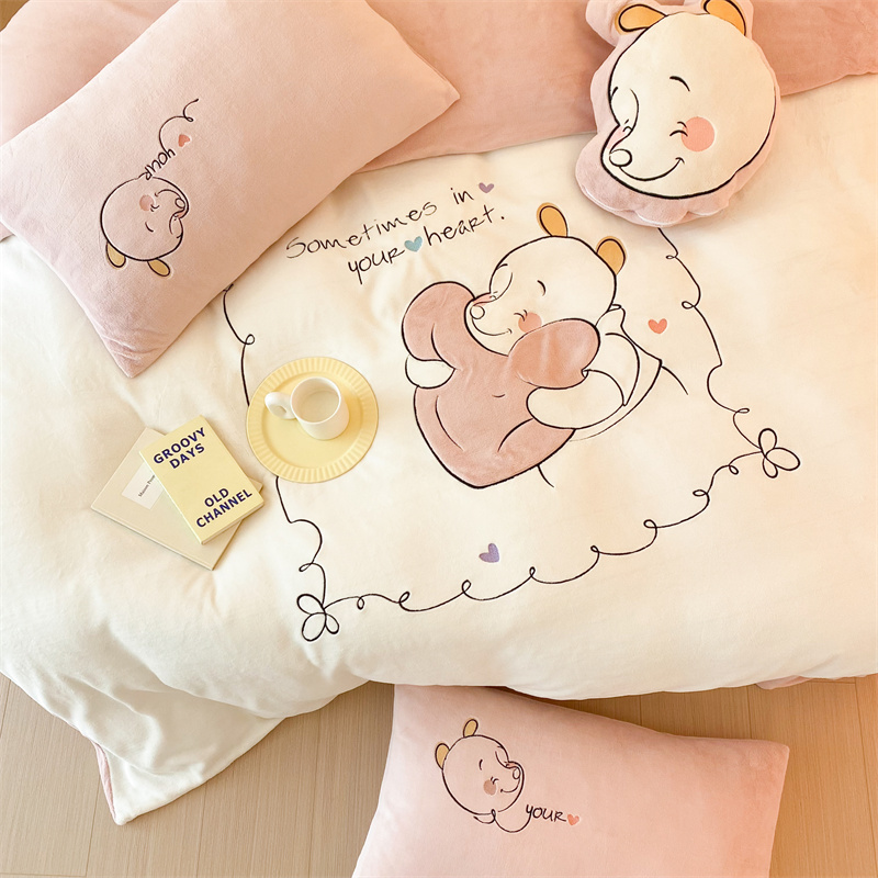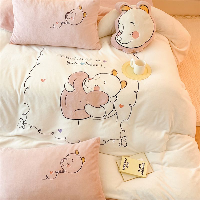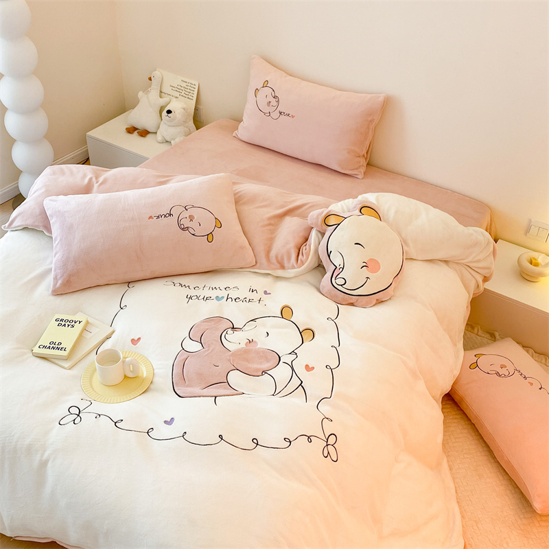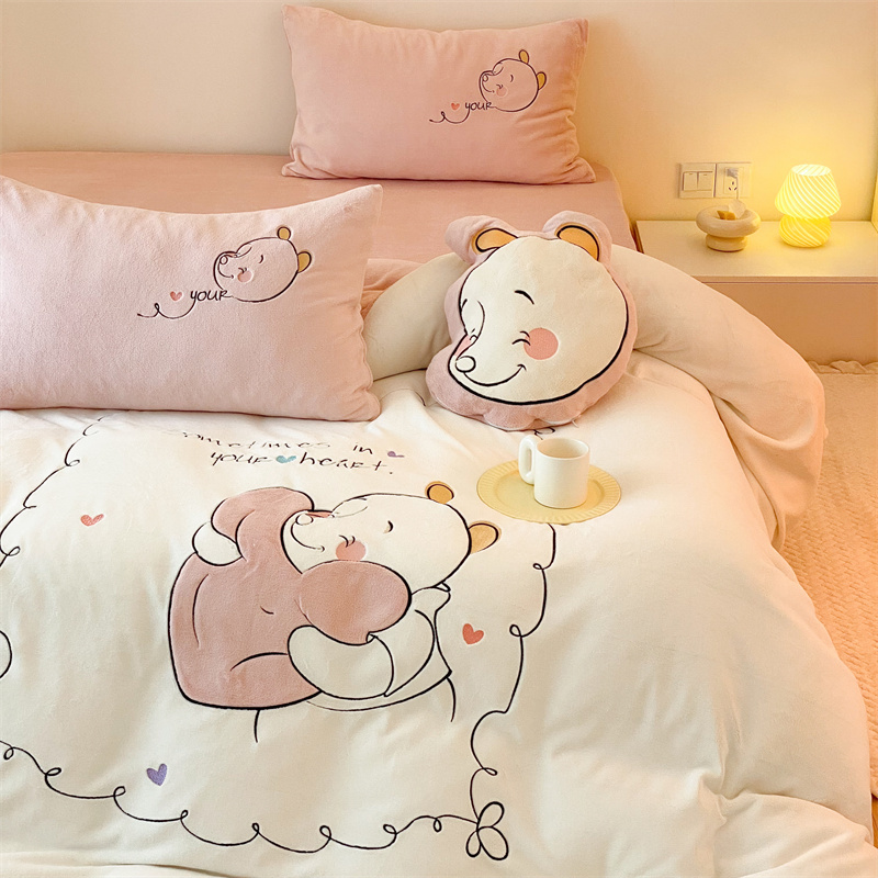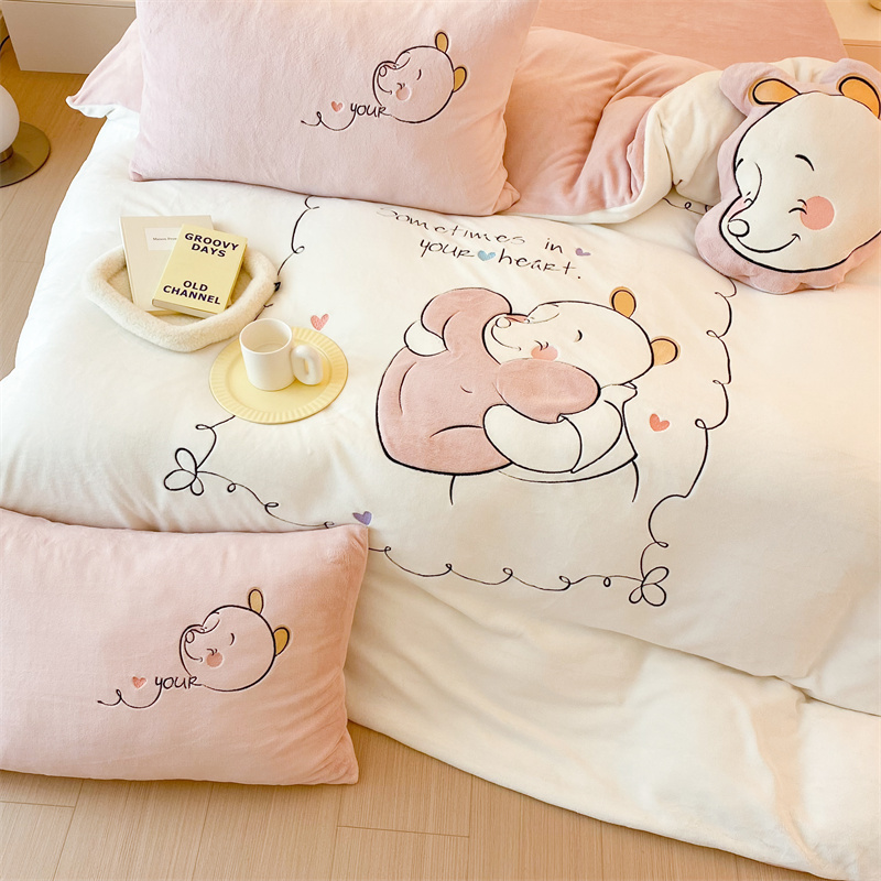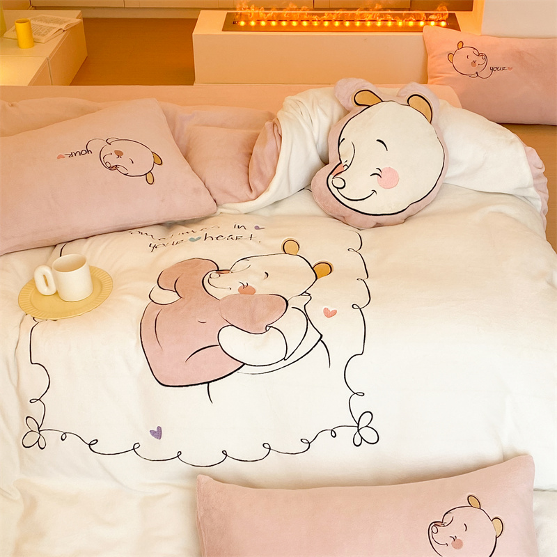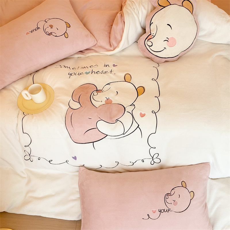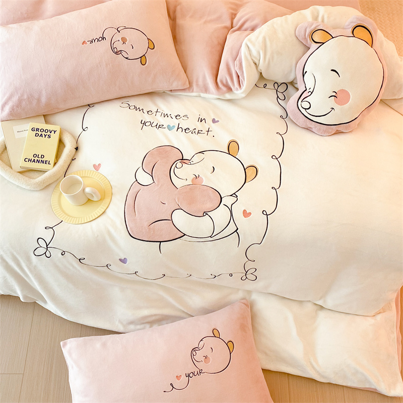 (总)朗莎家纺 2021新款贴布绣牛奶绒四件套,悠悠熊,唐老鸭