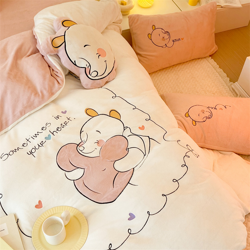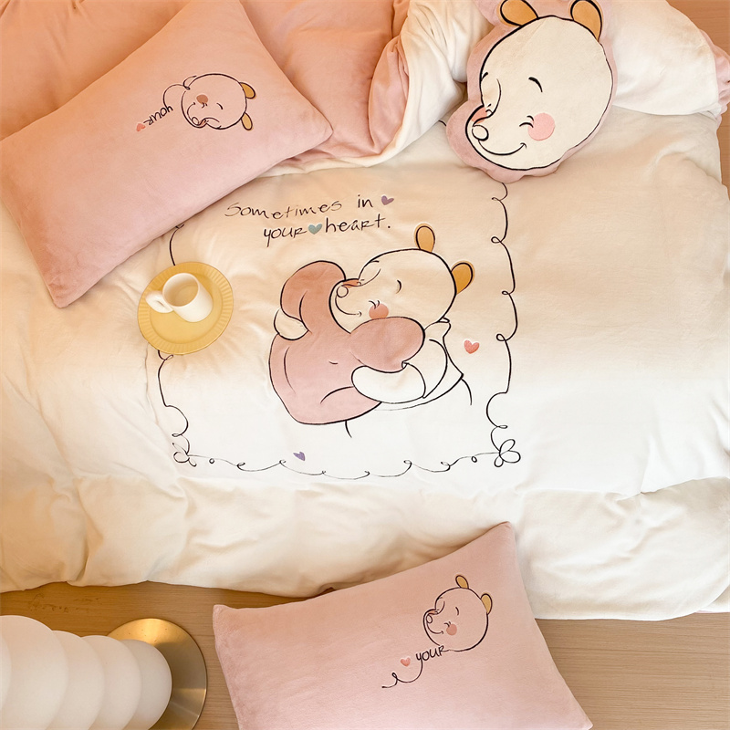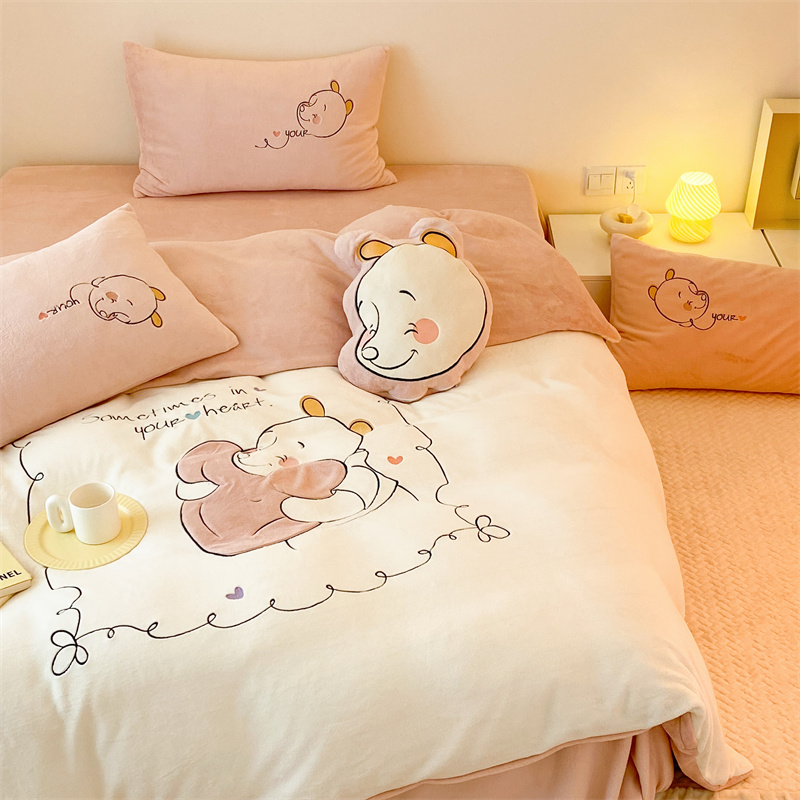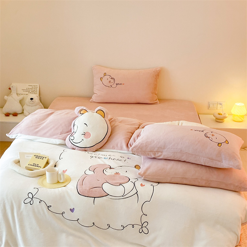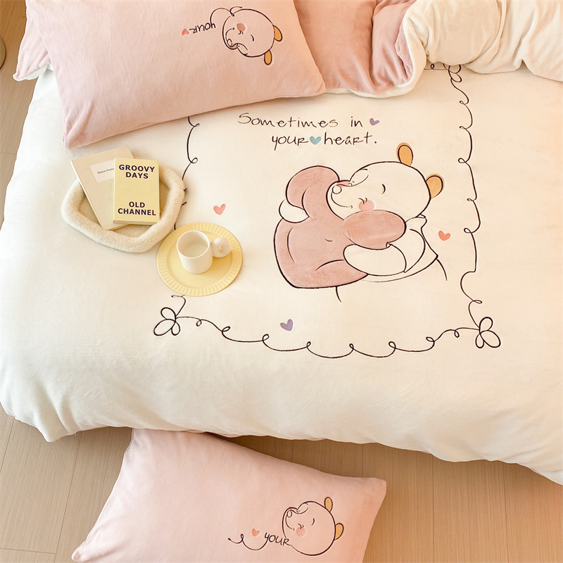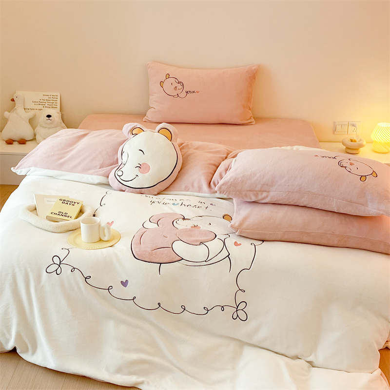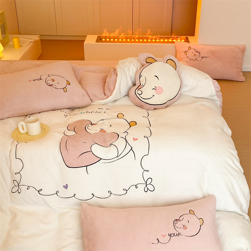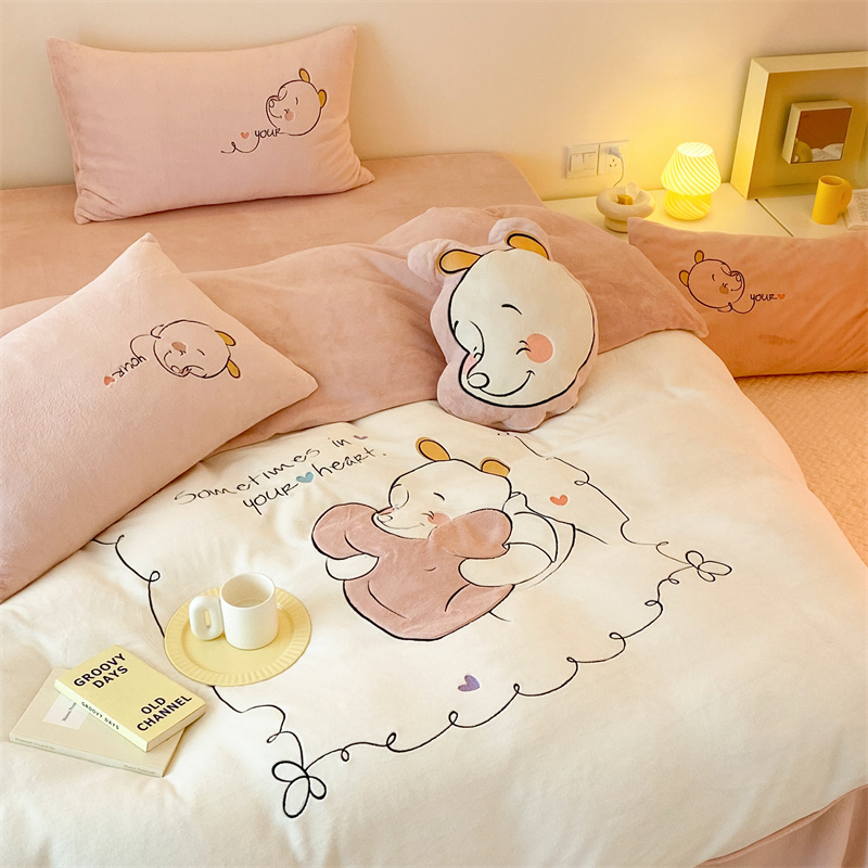 (总)朗莎家纺 2021新款贴布绣牛奶绒四件套,悠悠熊,唐老鸭