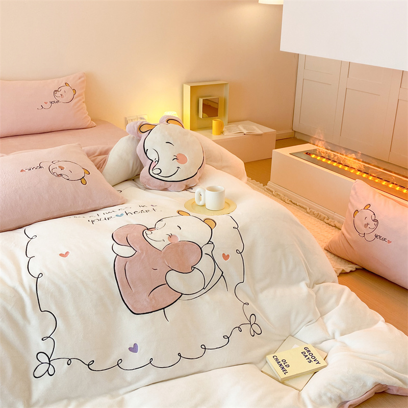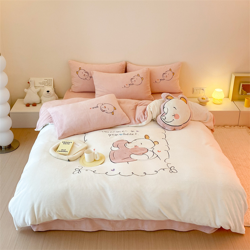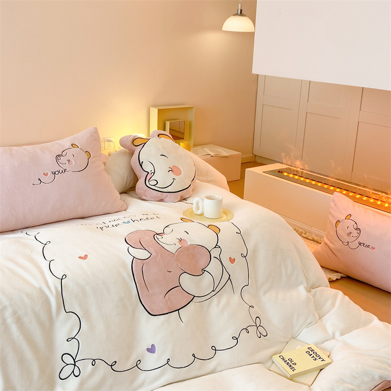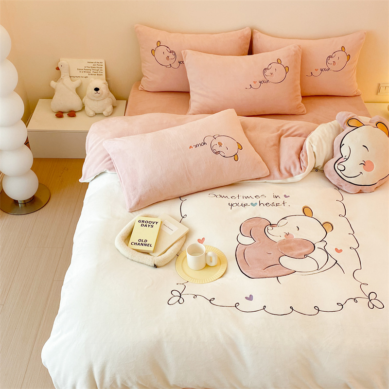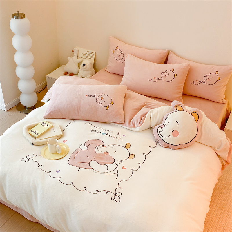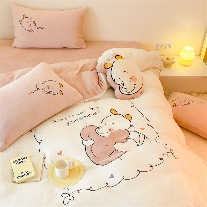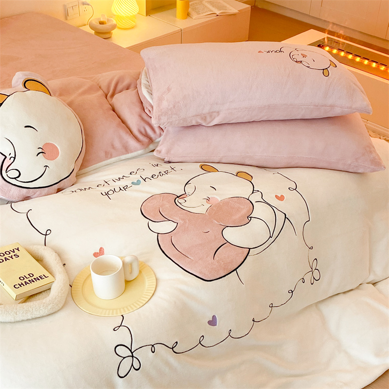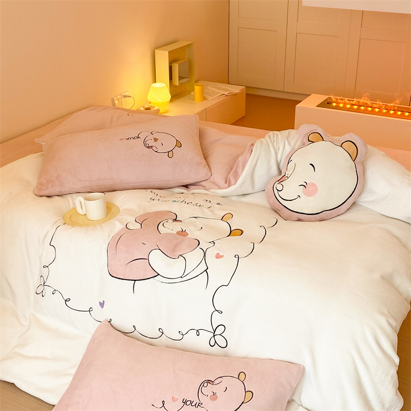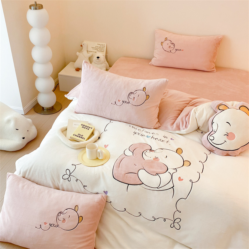(总)朗莎家纺 2021新款贴布绣牛奶绒四件套,悠悠熊,唐老鸭