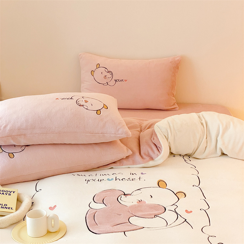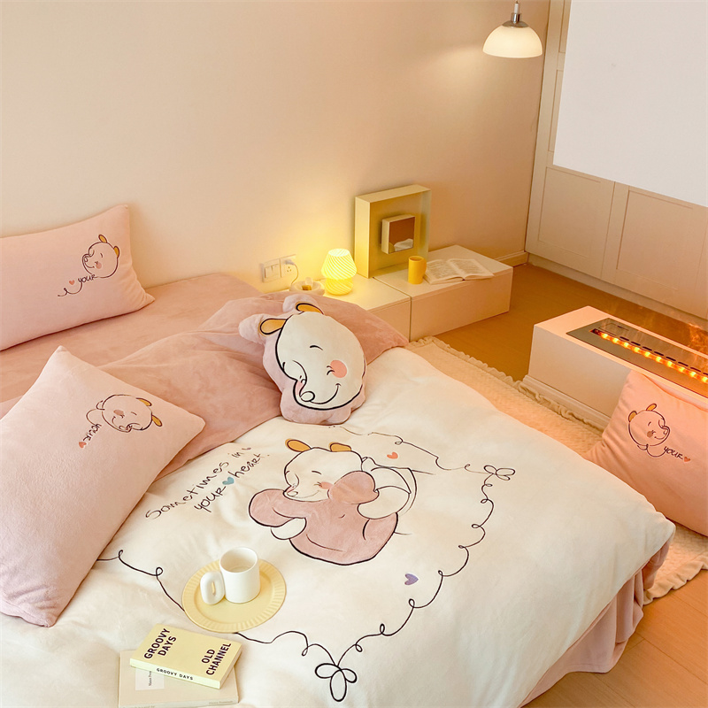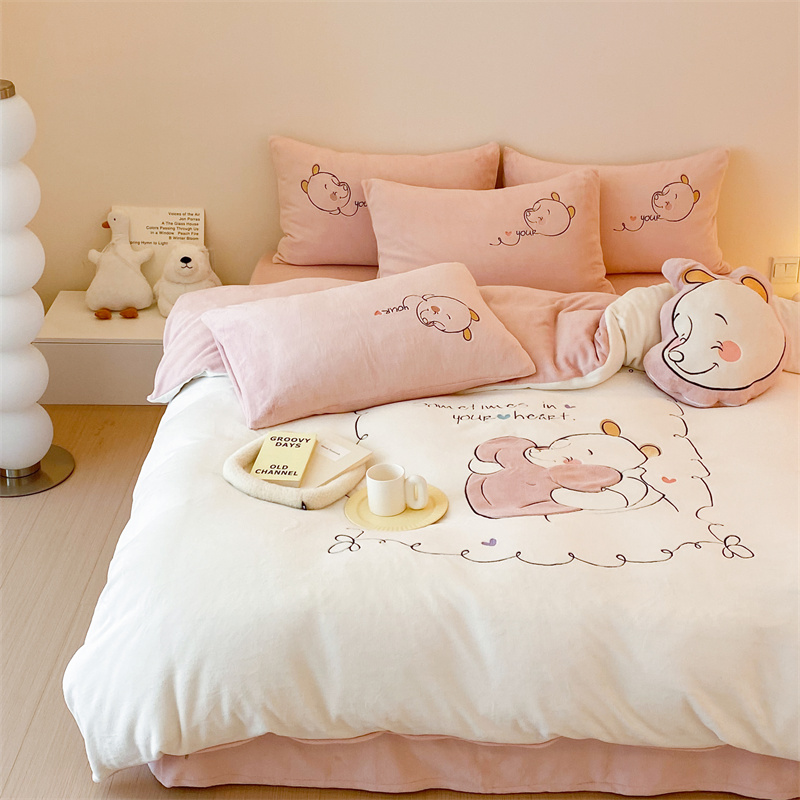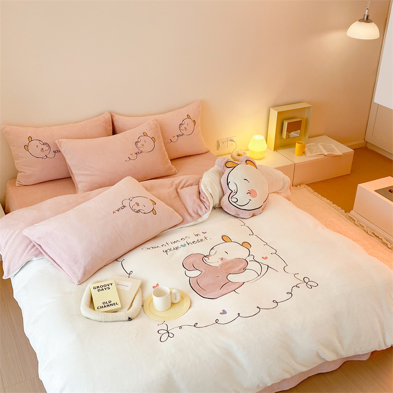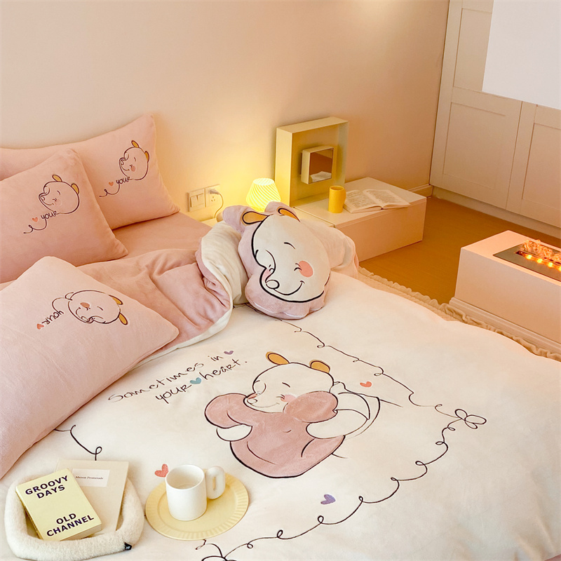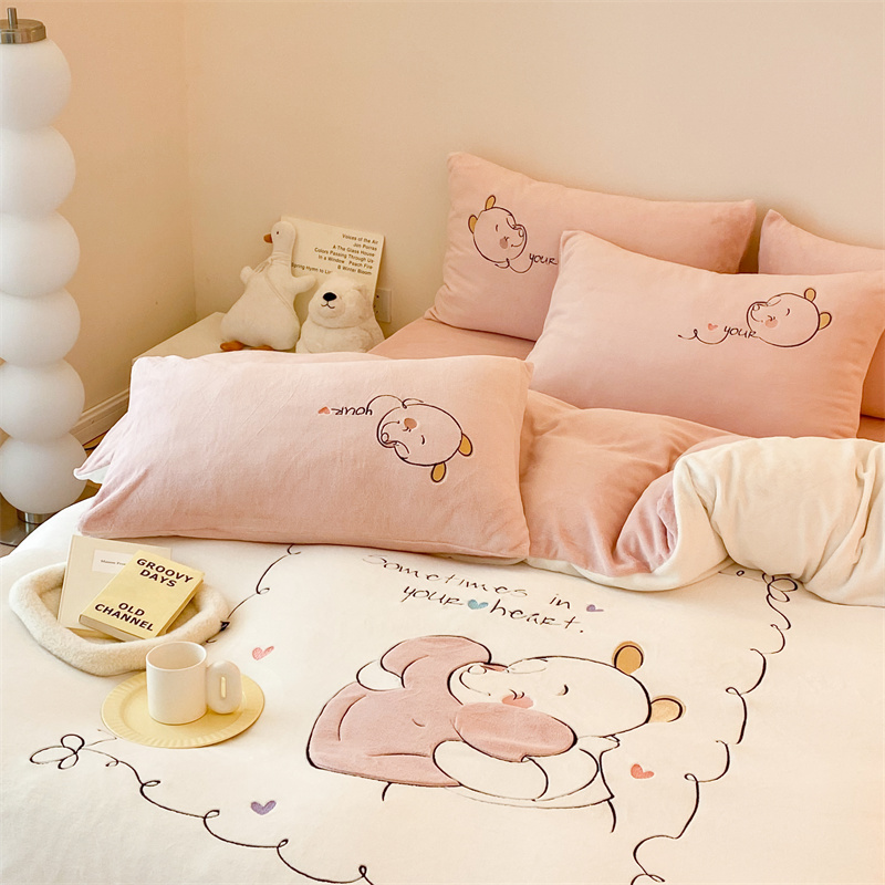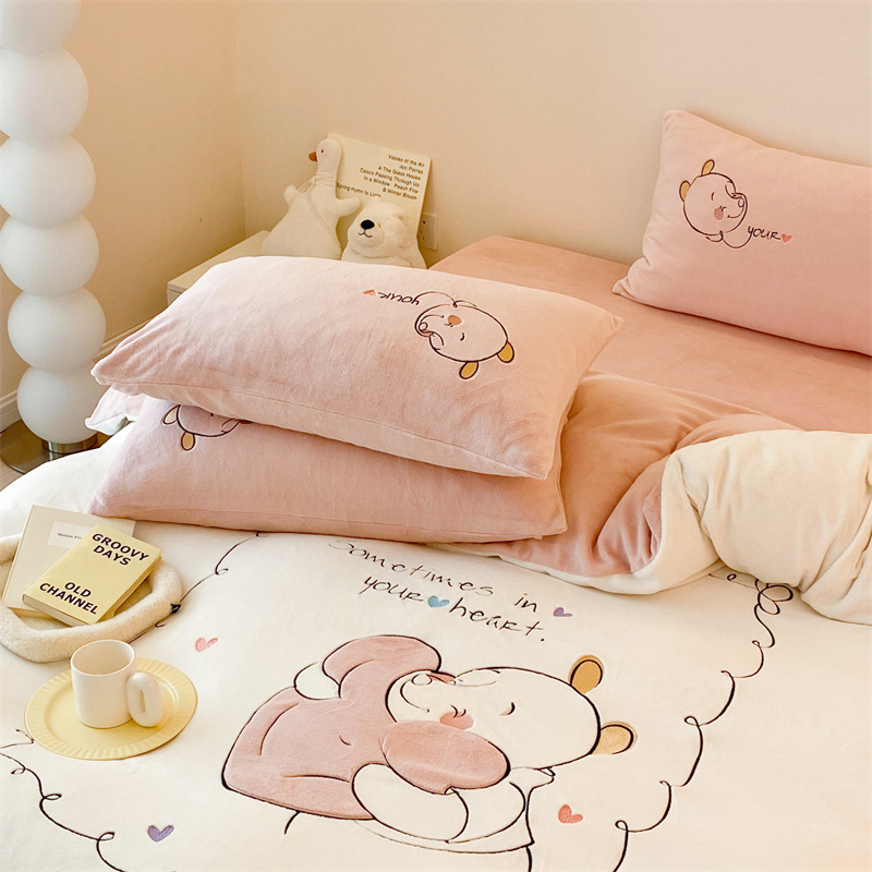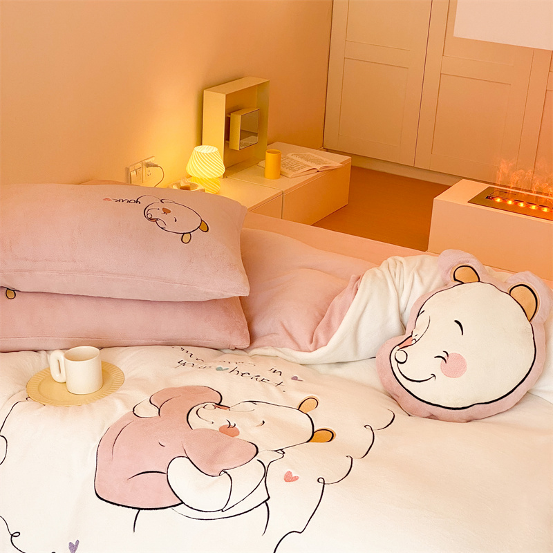 (总)朗莎家纺 2021新款贴布绣牛奶绒四件套,悠悠熊,唐老鸭