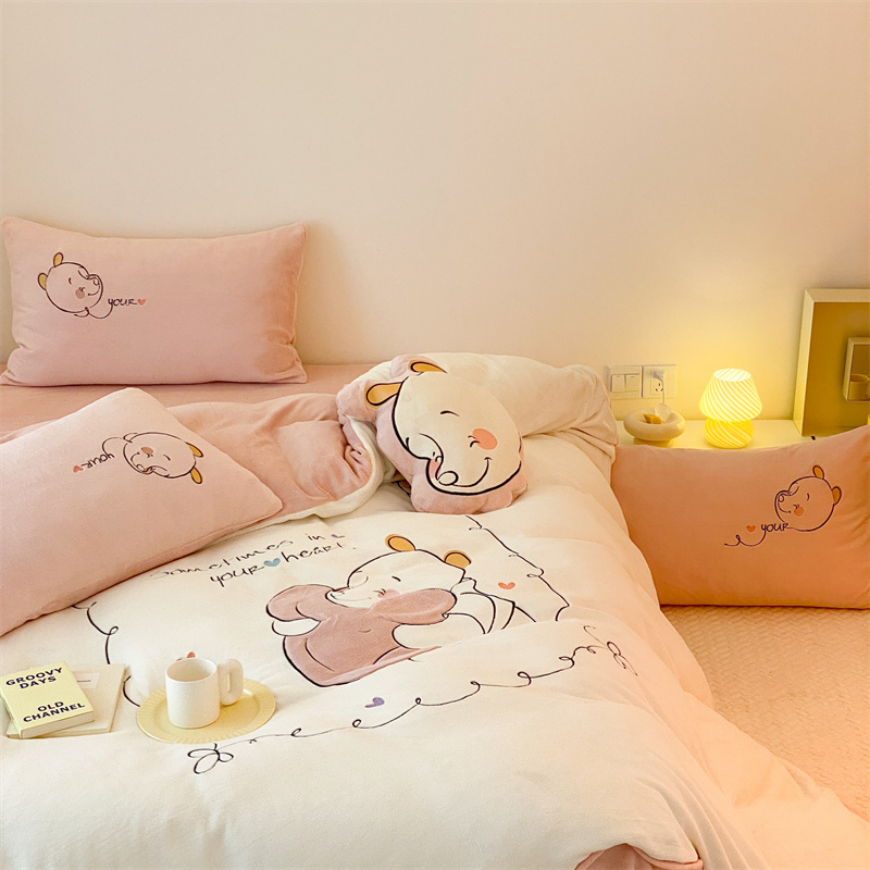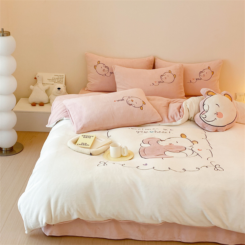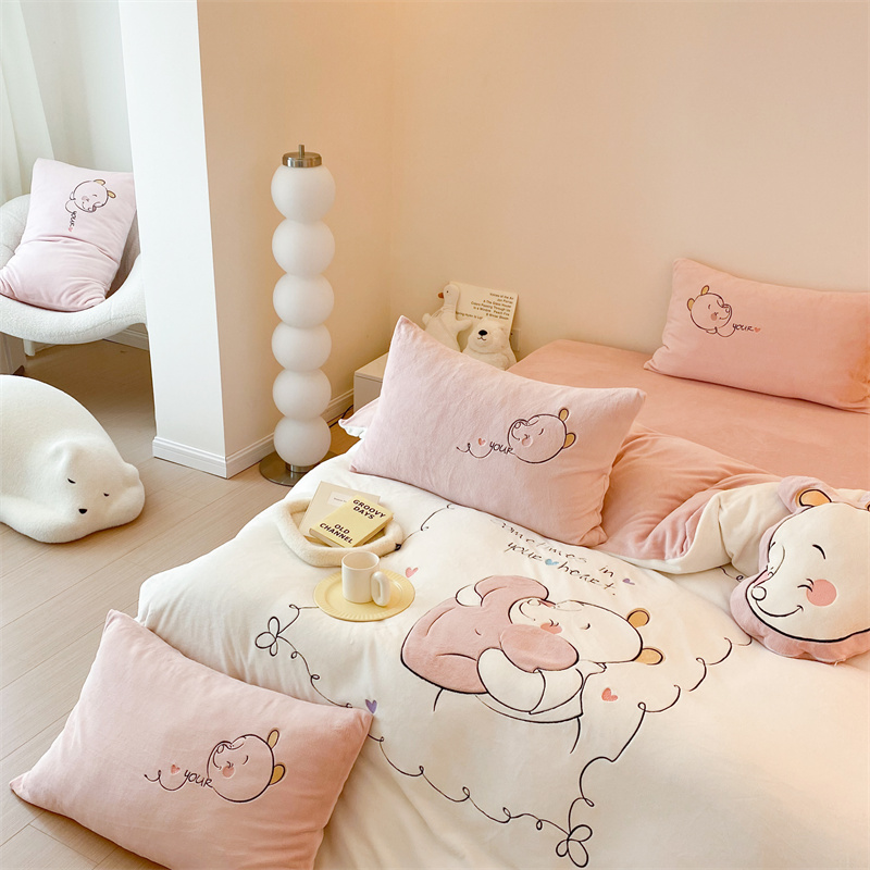 (总)朗莎家纺 2021新款毛巾绣牛奶绒四件套,悠悠熊粉,悠悠熊卡其,黛西天蓝,黛西香芋紫,米奇粉,米奇蓝