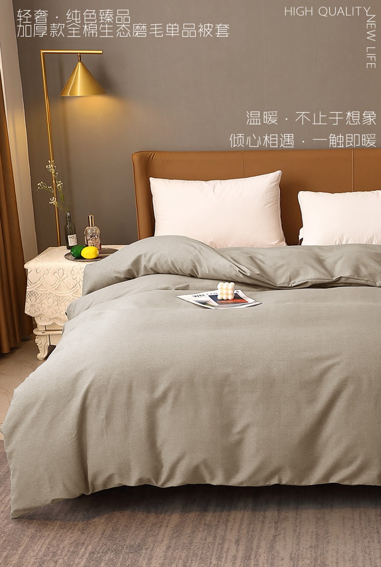 晶缦家纺 2022新款加厚全棉纯色生态磨毛多规格单被套 纯依-时尚灰