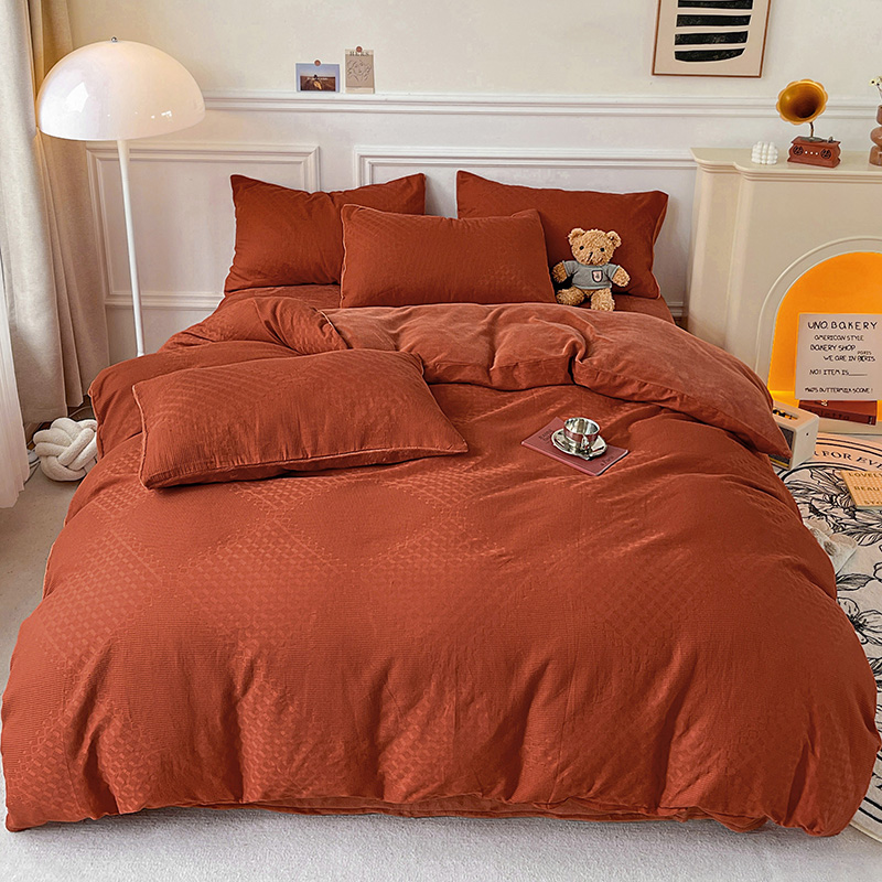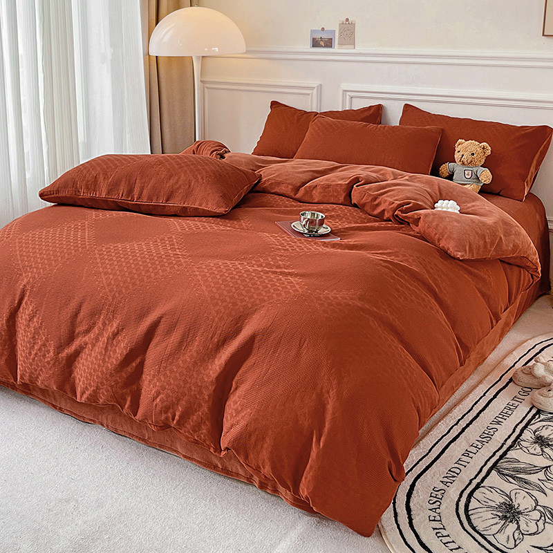 金丝鸟 2022全棉华夫格提花加牛奶绒四件套 拉夫格红