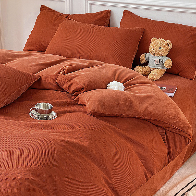 商品名称:金丝鸟 2022全棉华夫格提花加牛奶绒四件套 拉夫格红