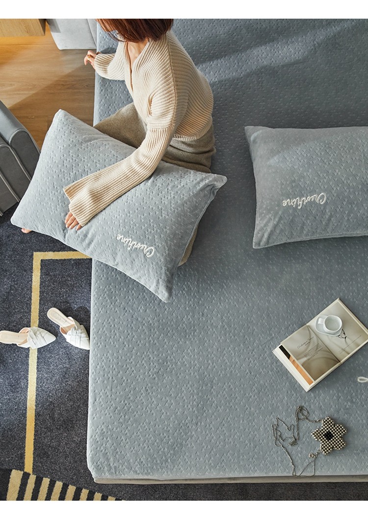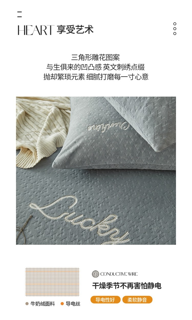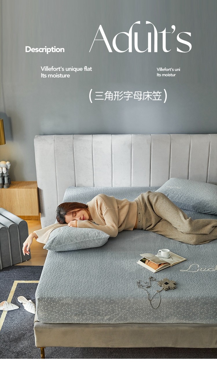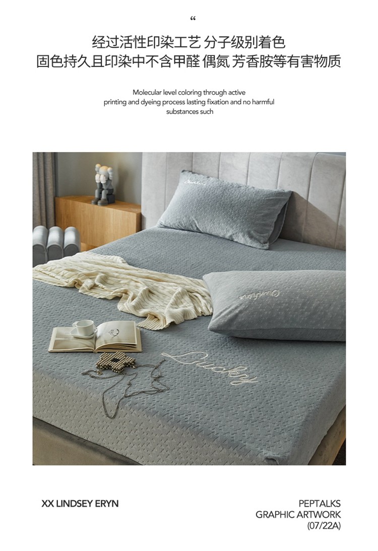 商品名称:铭动 2023新款牛奶绒三角形字母床笠 黛灰绿