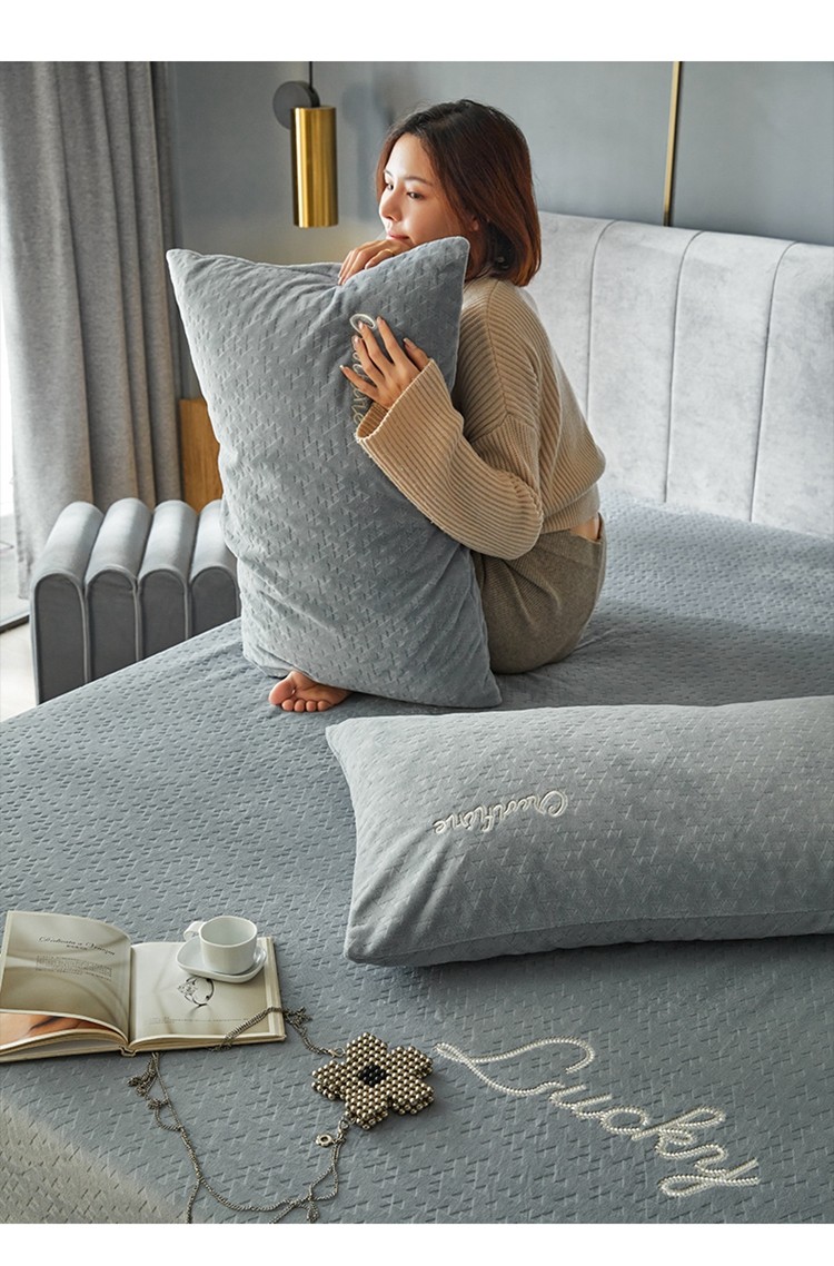 铭动 2023新款牛奶绒三角形字母床笠 黛灰绿
