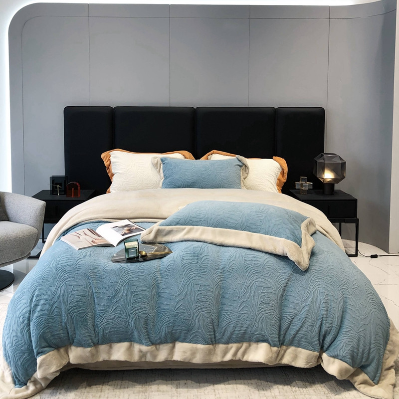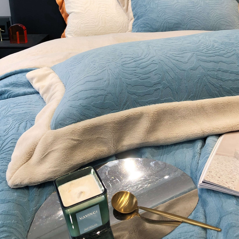 商品名称:太古汇 2022新款雕花牛奶绒斑马纹双拼系列四件套 斑马纹-蓝