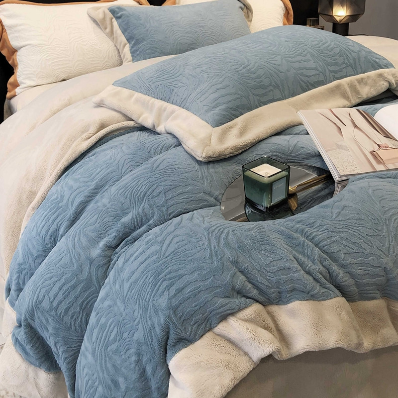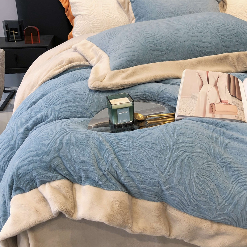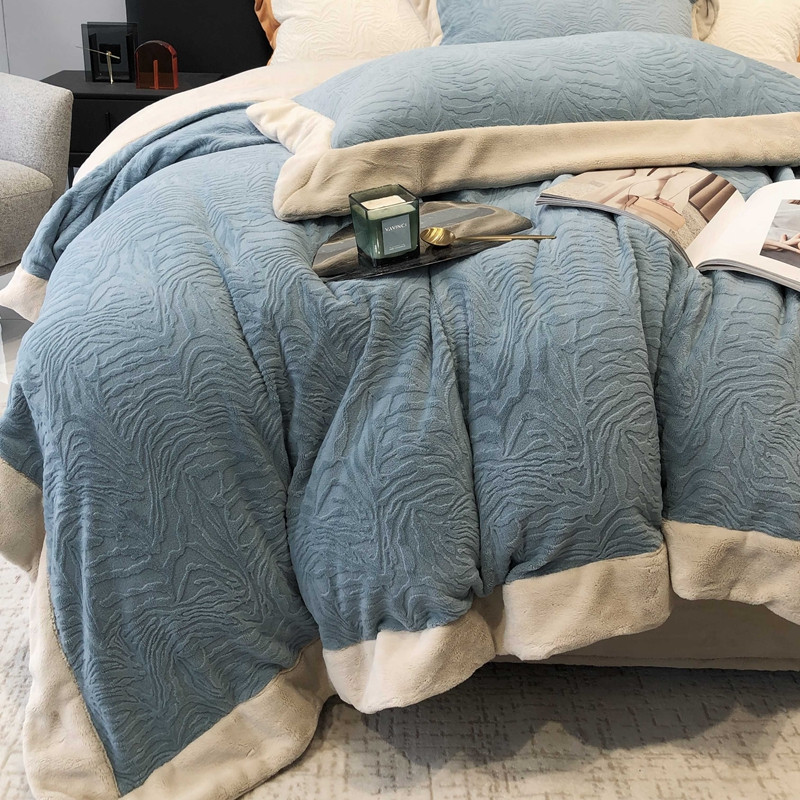 太古汇 2022新款雕花牛奶绒斑马纹双拼系列四件套 斑马纹-蓝