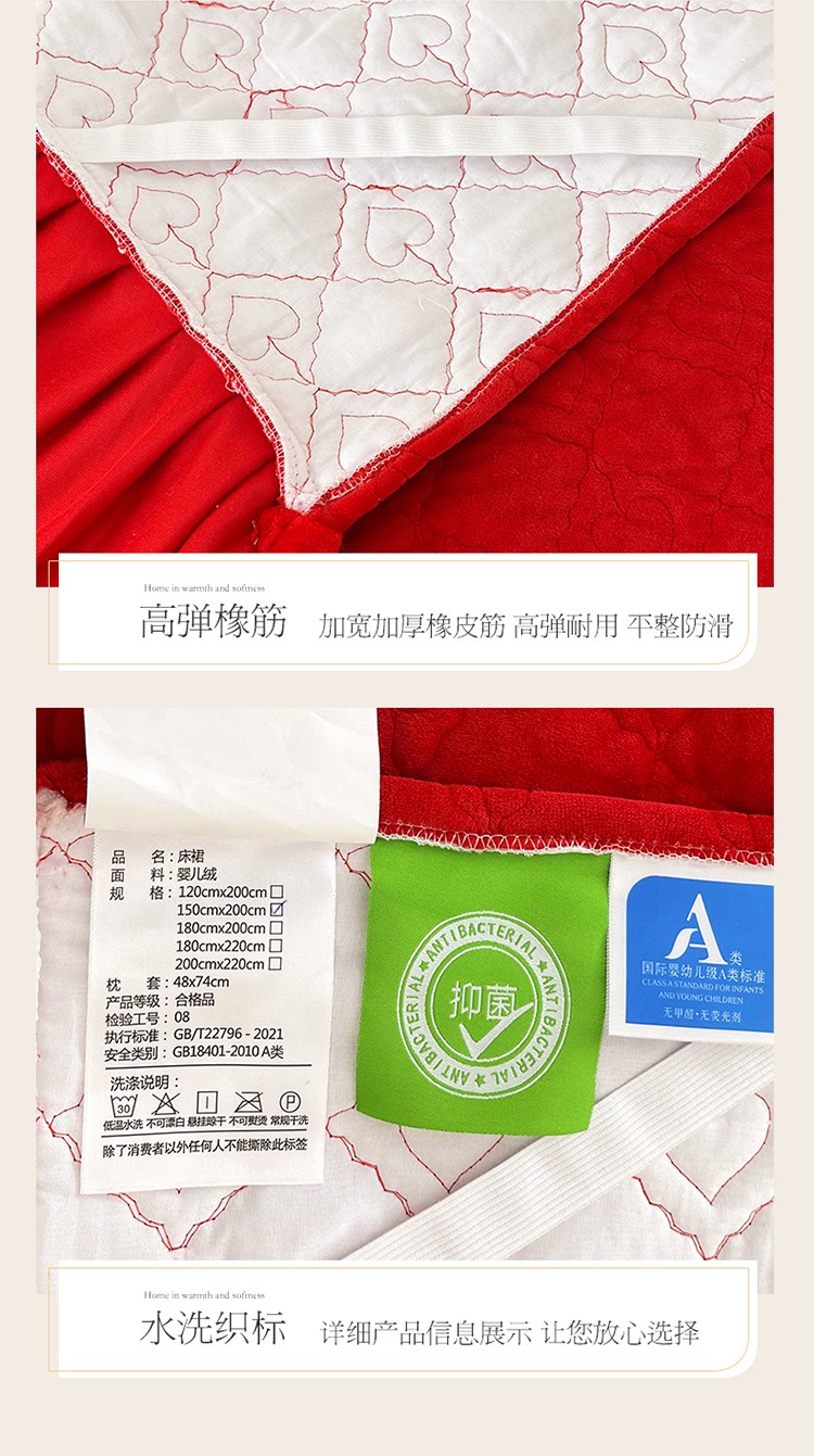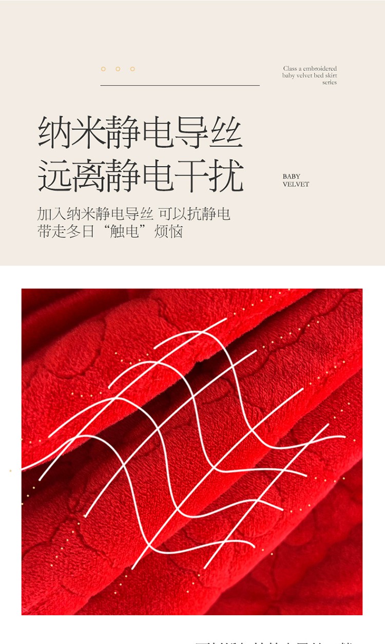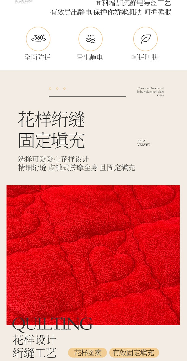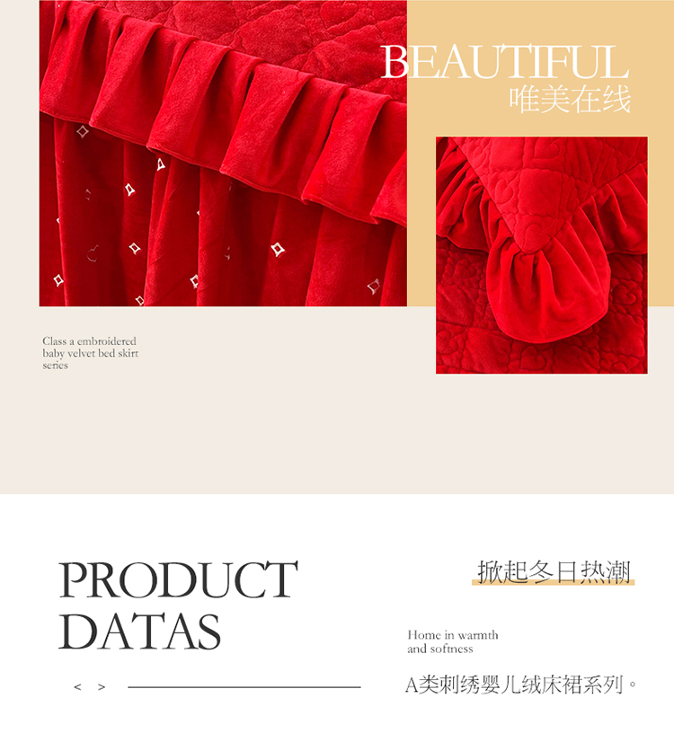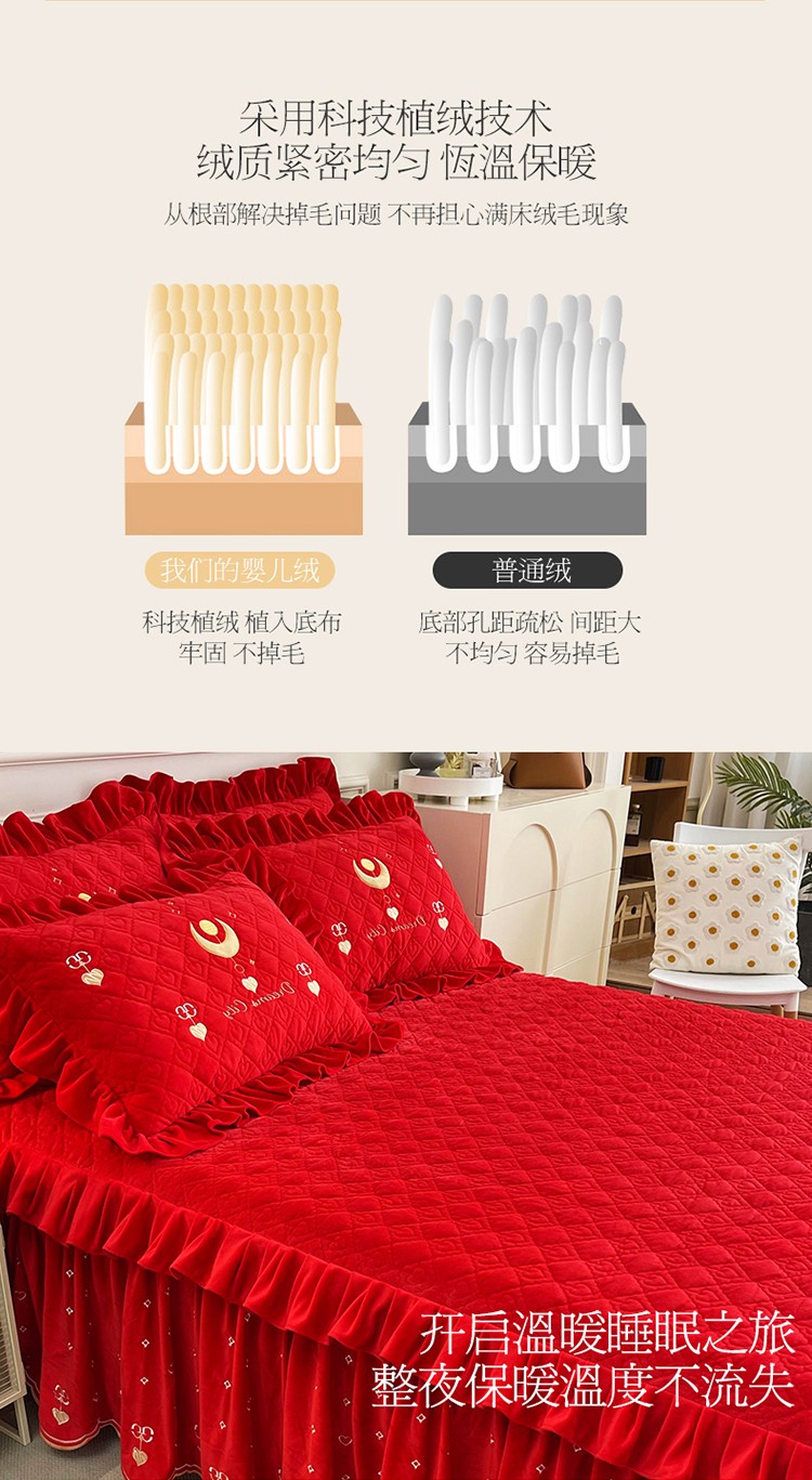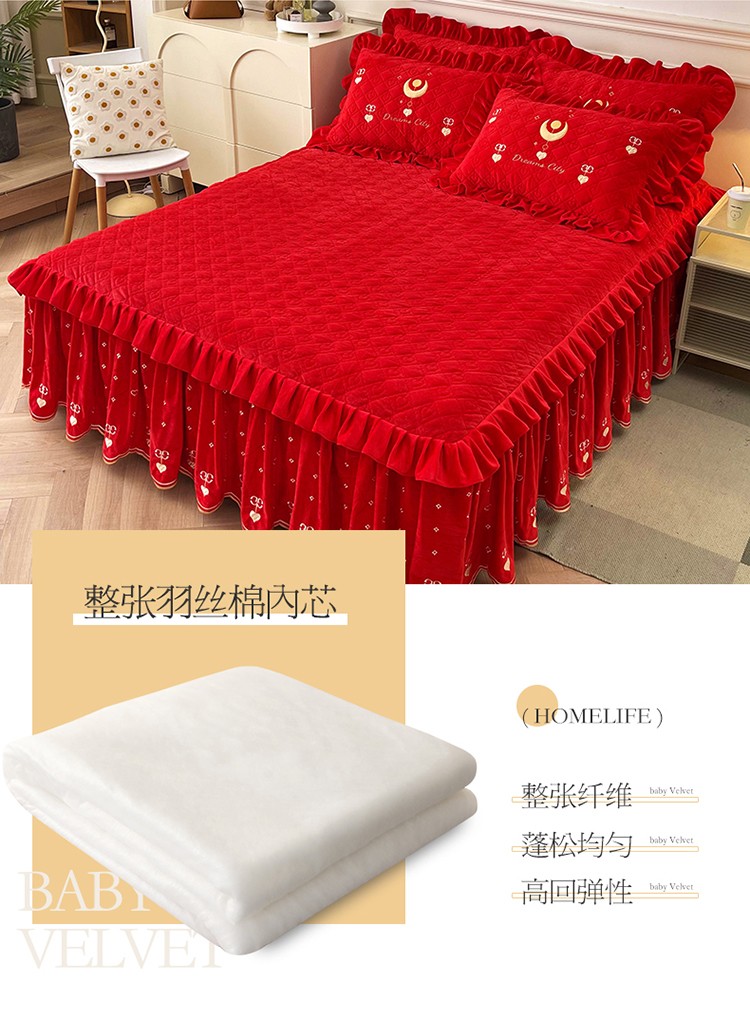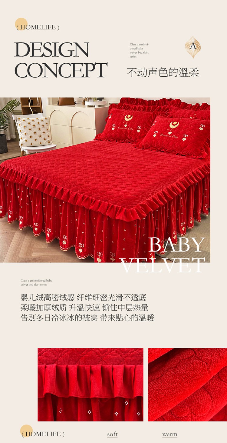 (总)宜凡家纺 2025新款婴儿绒压花全夹棉床裙四件套,韵雅-中国红,韵雅-黑天鹅