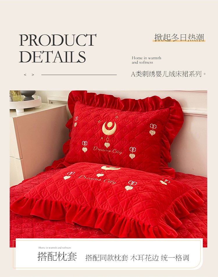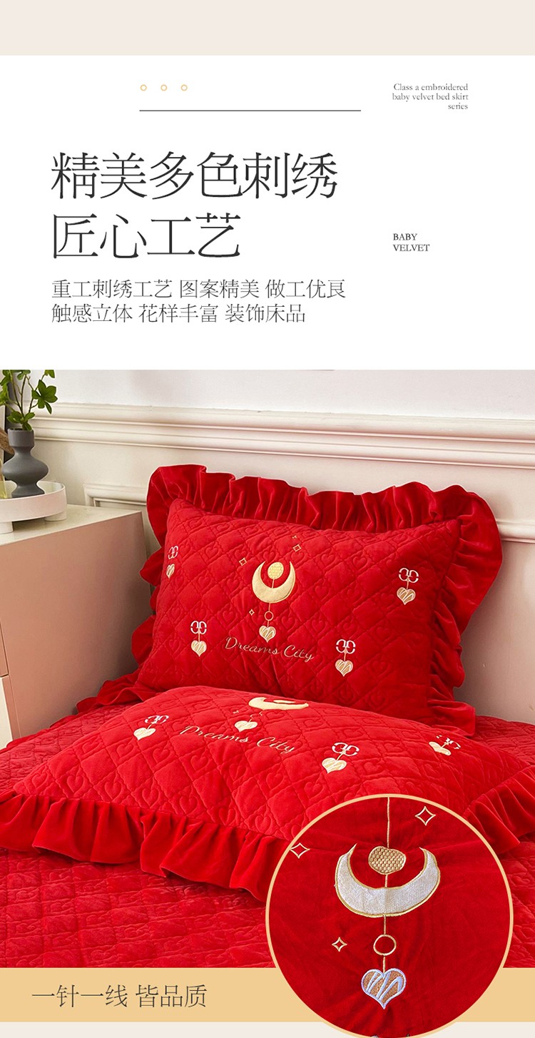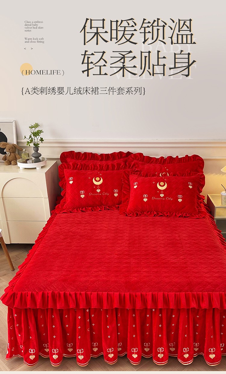 商品名称:宜凡家纺 2022新款A类婴儿绒床裙星悦系列三件套 星悦-中国红
