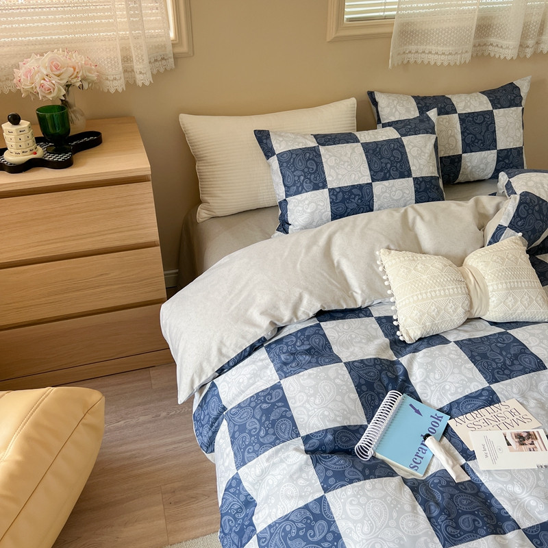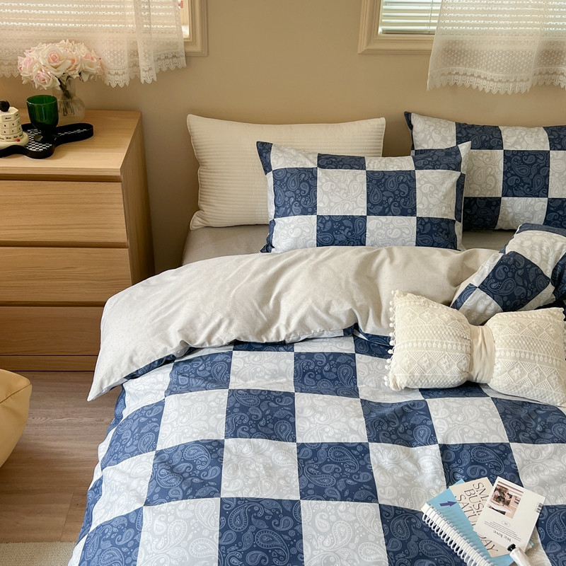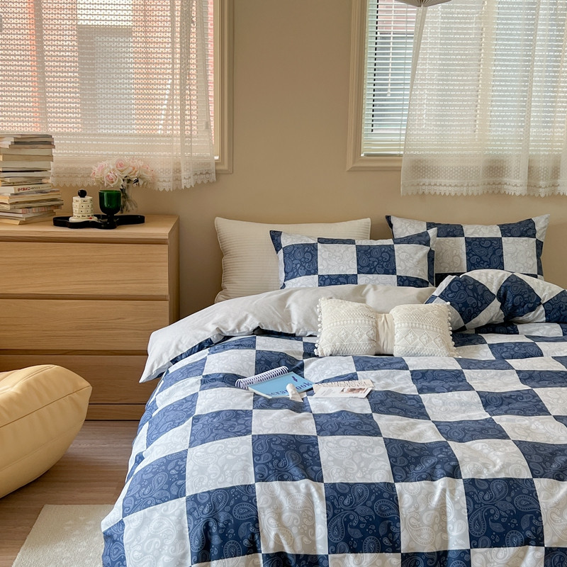 (总)时年2022新款全棉40支13372ins条纹款四件套,复古钴蓝,复古奶绿