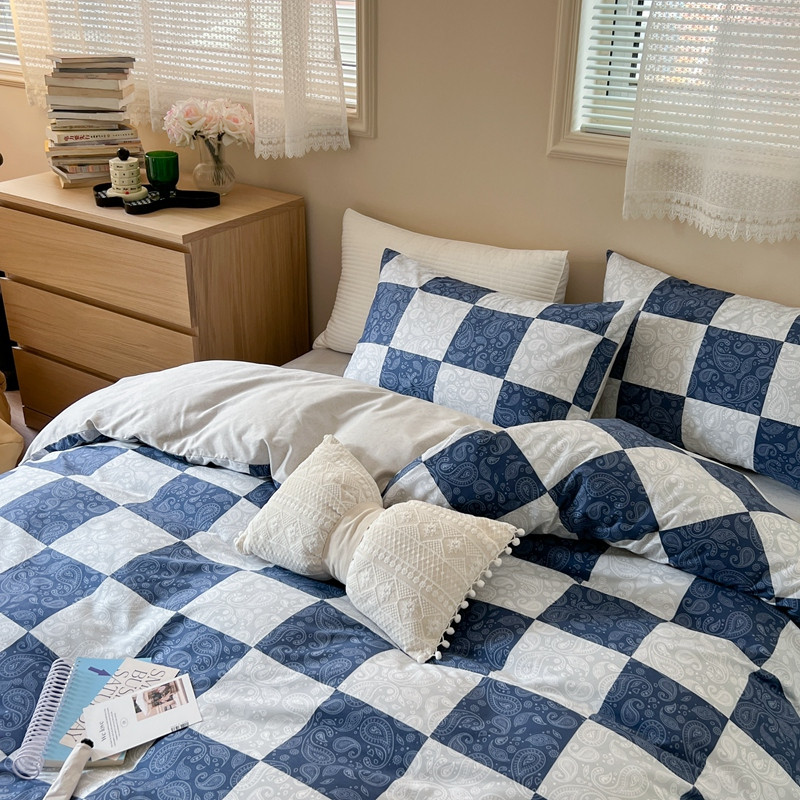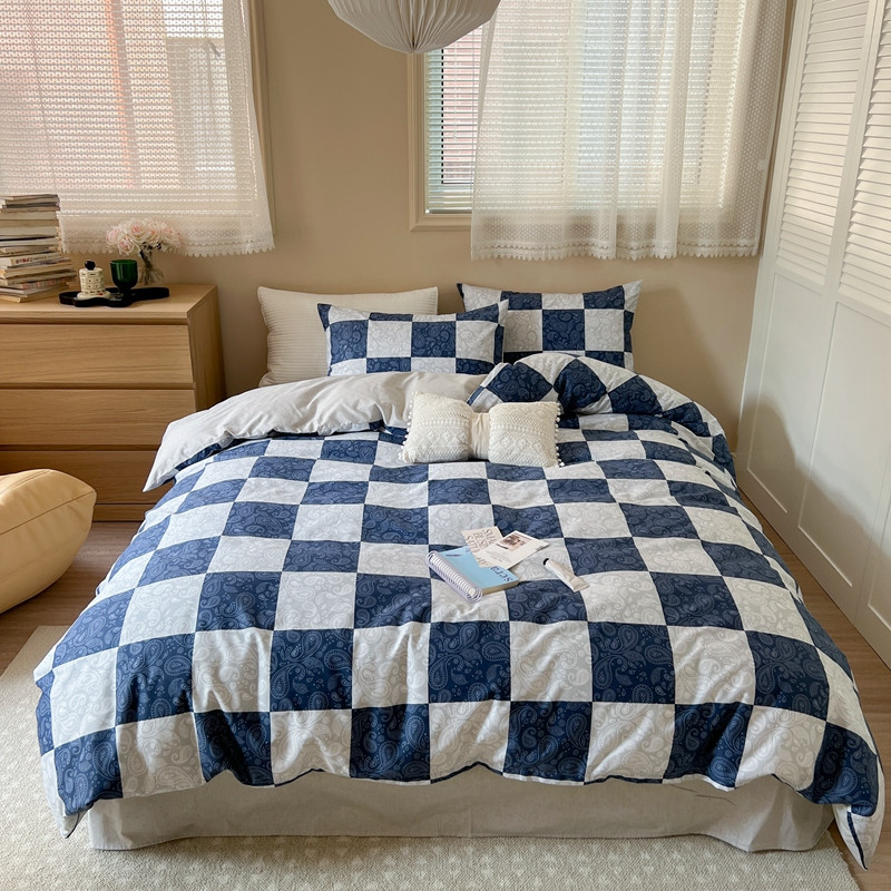 (总)时年 2022新款全棉水洗棉四件套嵌绳款,爱丽丝蓝(浅蓝),克莱因蓝(深蓝)