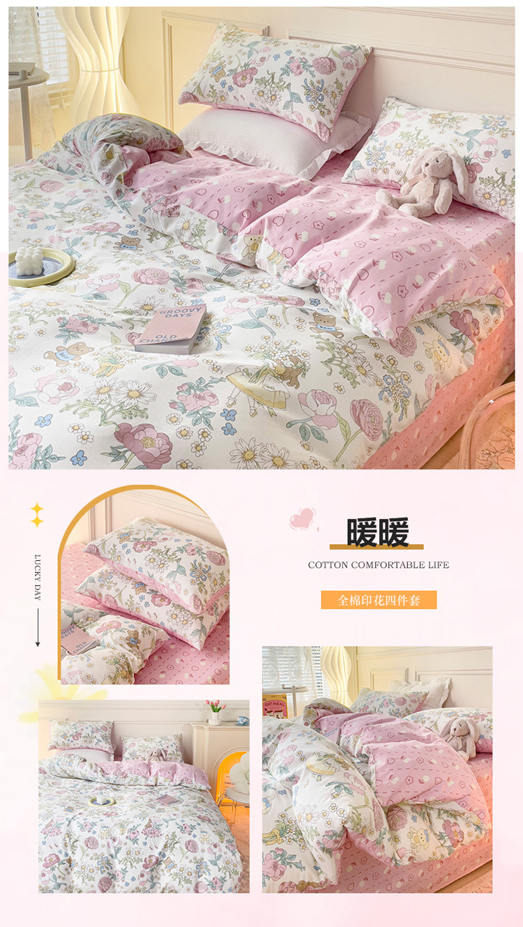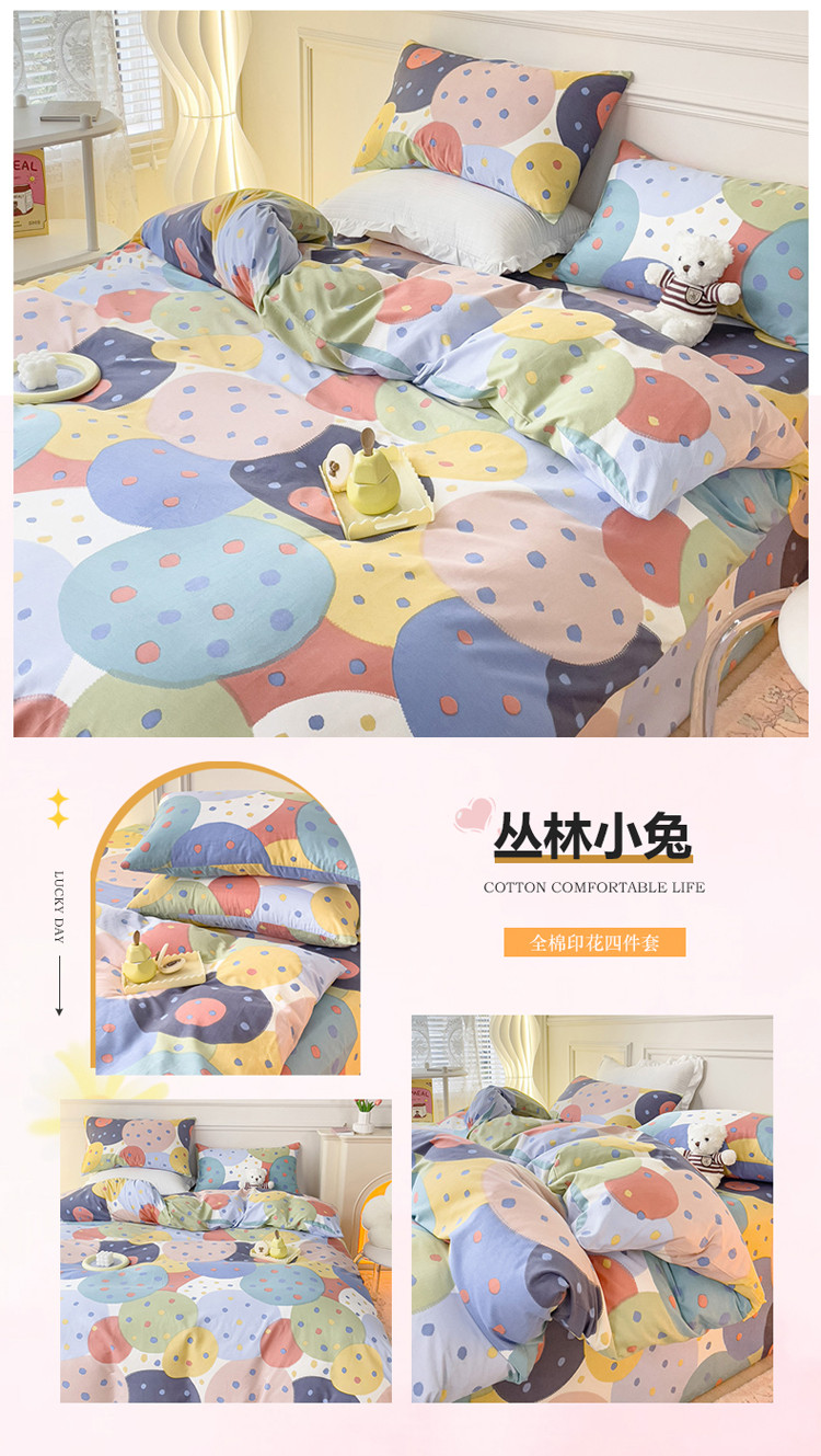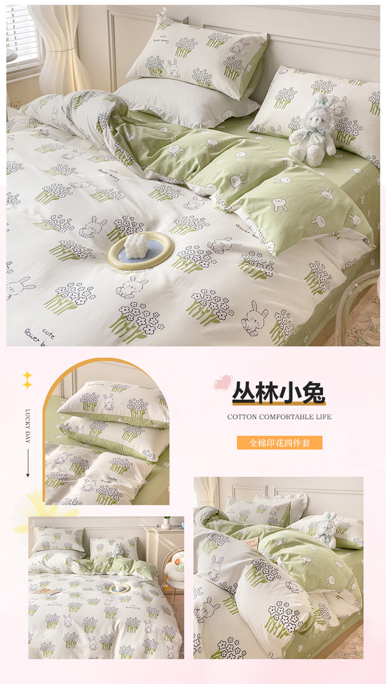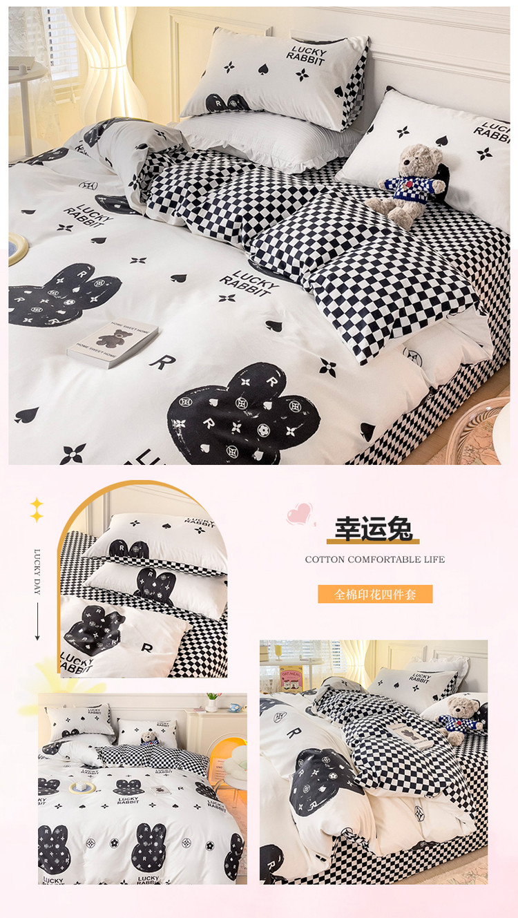 (总)感遇家纺 2025新款小清新甜系全棉四件套,百丽兔,波点小女孩,点点小狗,复古樱桃,格子草莓,格子樱桃,花间牧歌,灰条猫咪,奶绿,宁夏,森林小熊猫,甜心波点