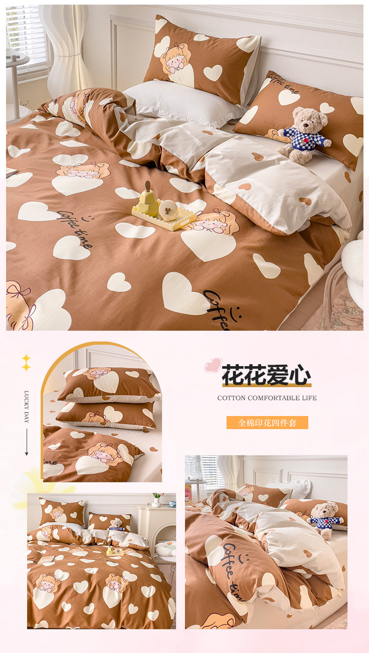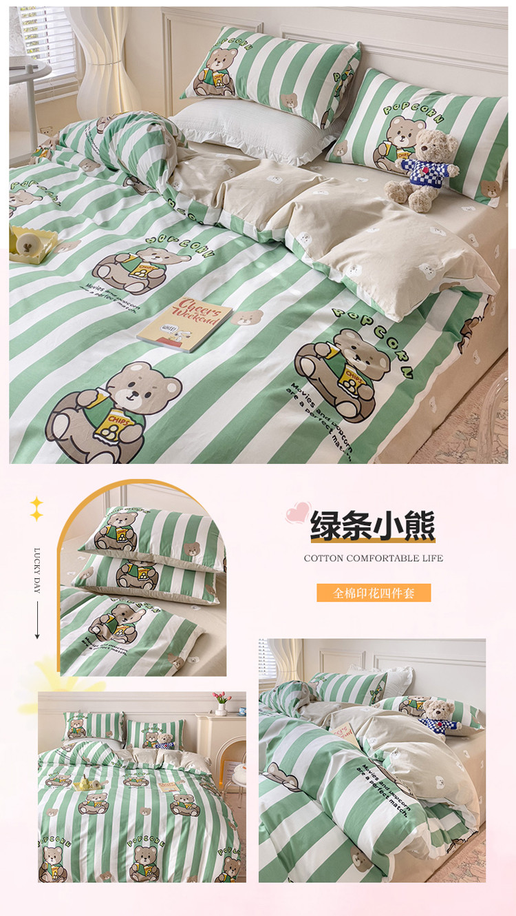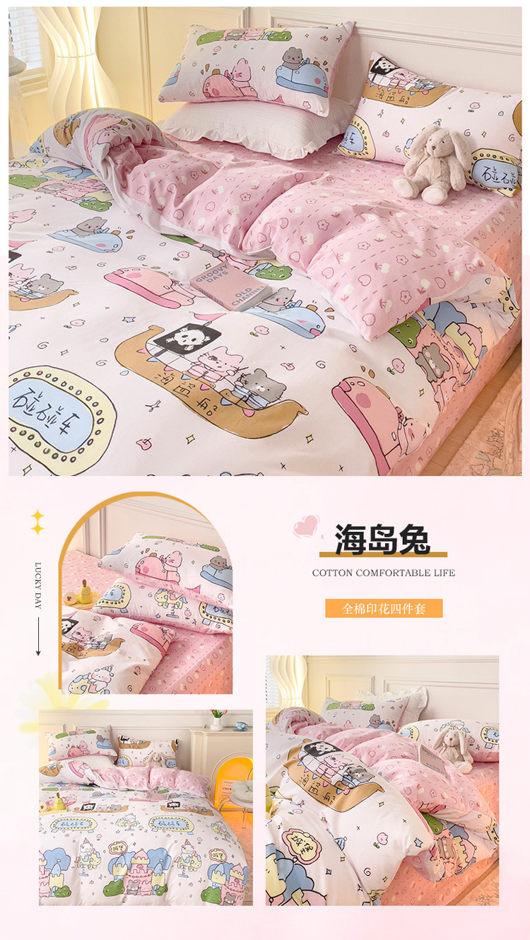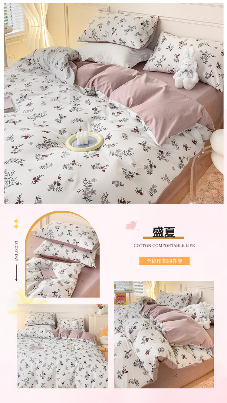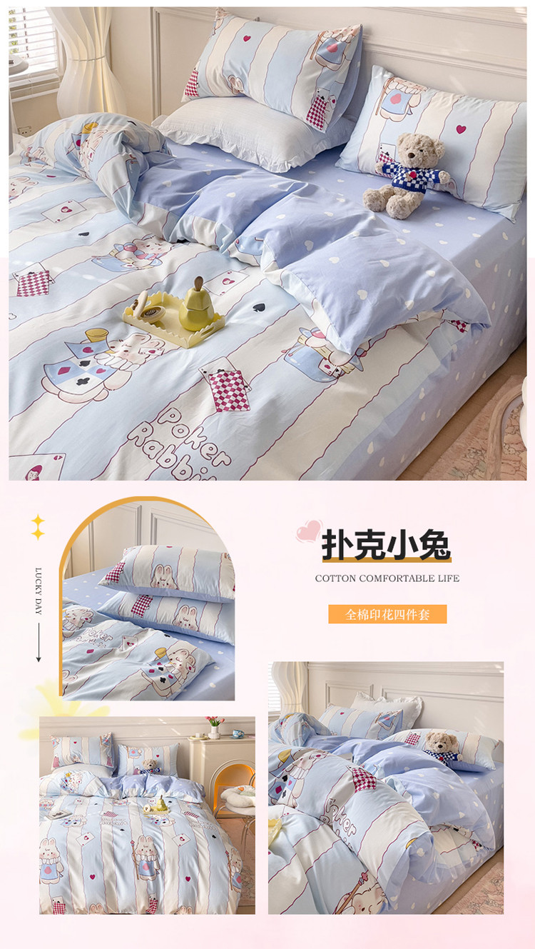 (总)感遇家纺 2025新款小清新甜系全棉四件套,百丽兔,波点小女孩,点点小狗,复古樱桃,格子草莓,格子樱桃,花间牧歌,灰条猫咪,奶绿,宁夏,森林小熊猫,甜心波点