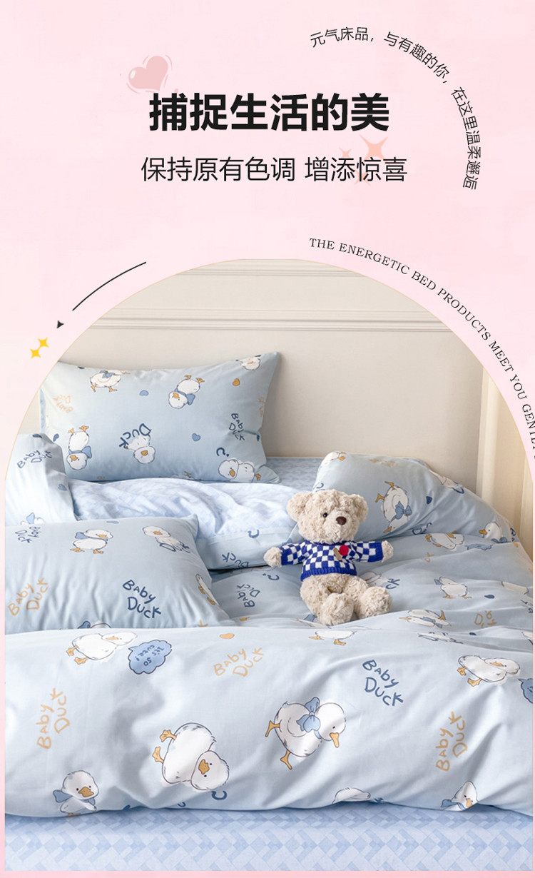 商品名称:感遇2022新款全棉印花四件套系列 萌萌鸭