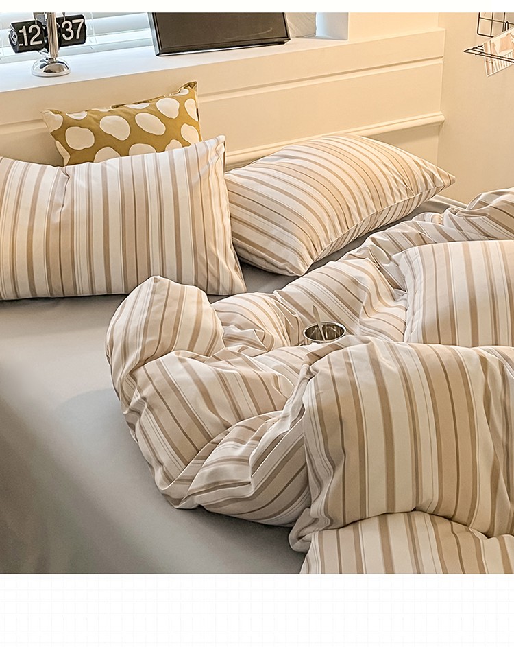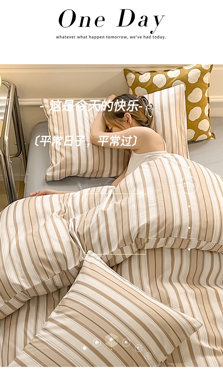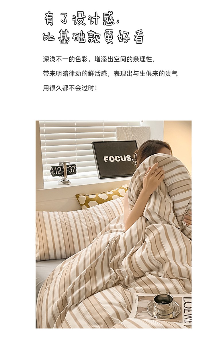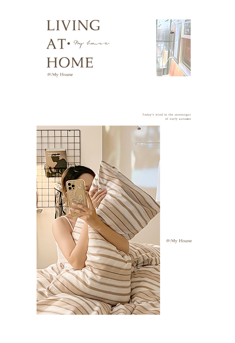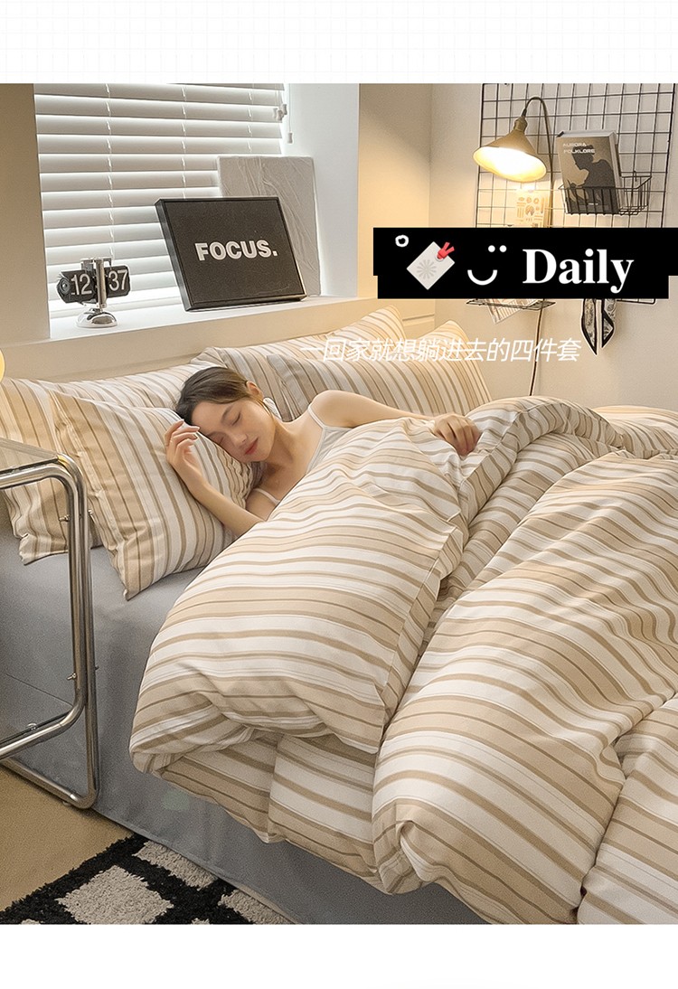 当前位置: 91家纺网 > 商品网购 > 床品套件 > 四件套 > 水洗棉四件套 > 眠帛家纺 2023新款极简色织水洗棉印花四件套 夏日驼