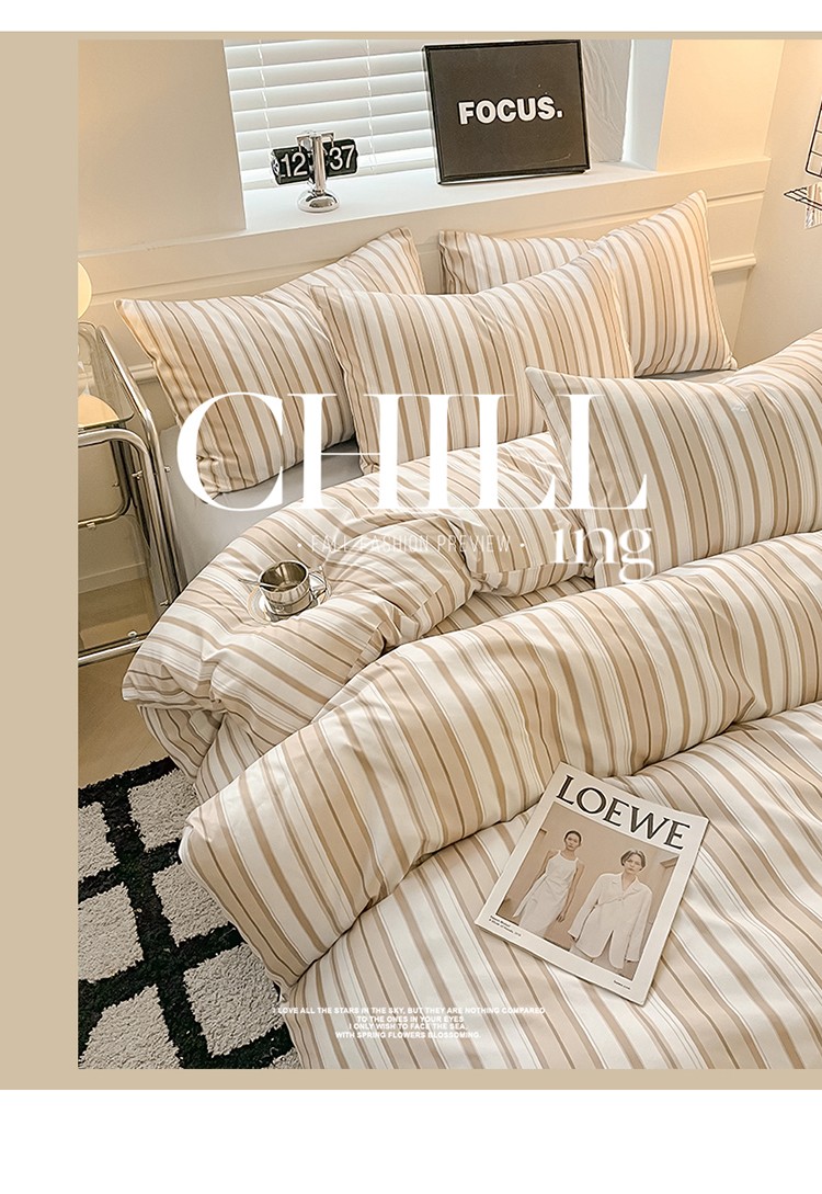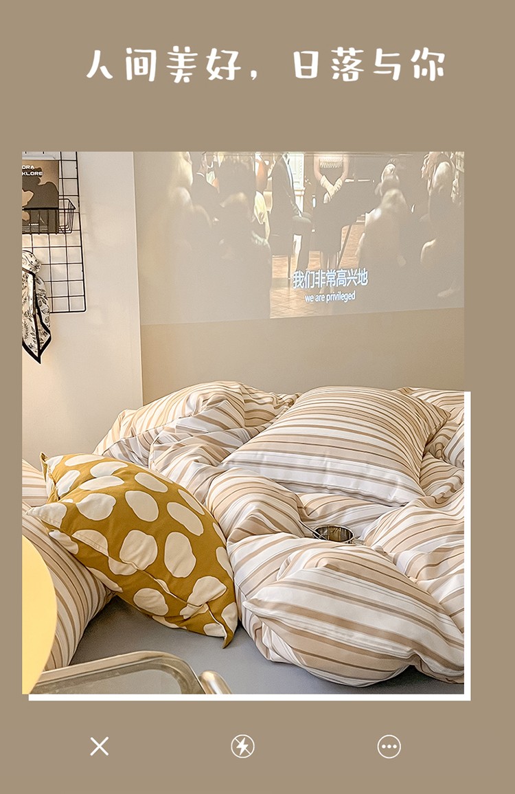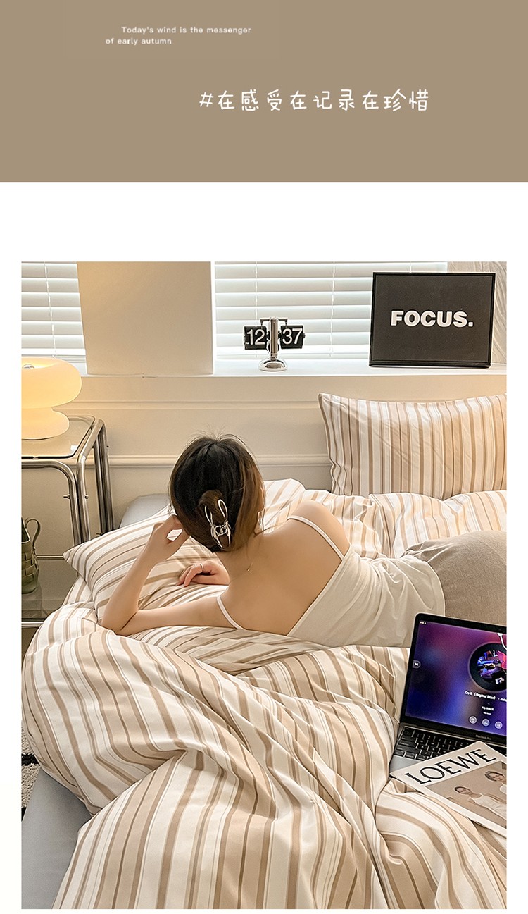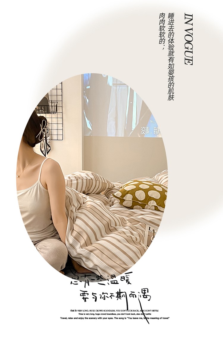 当前位置: 91家纺网 > 商品网购 > 床品套件 > 四件套 > 水洗棉四件套 > 眠帛家纺 2023新款极简色织水洗棉印花四件套 夏日驼
